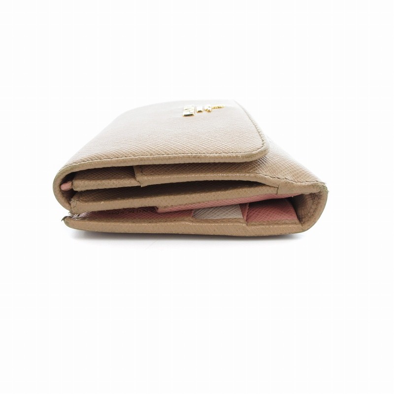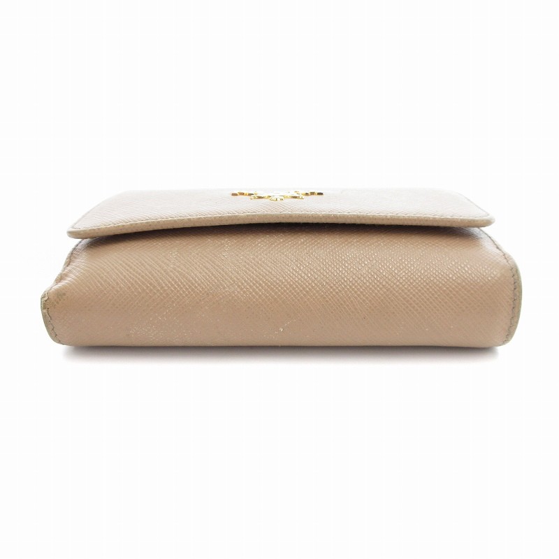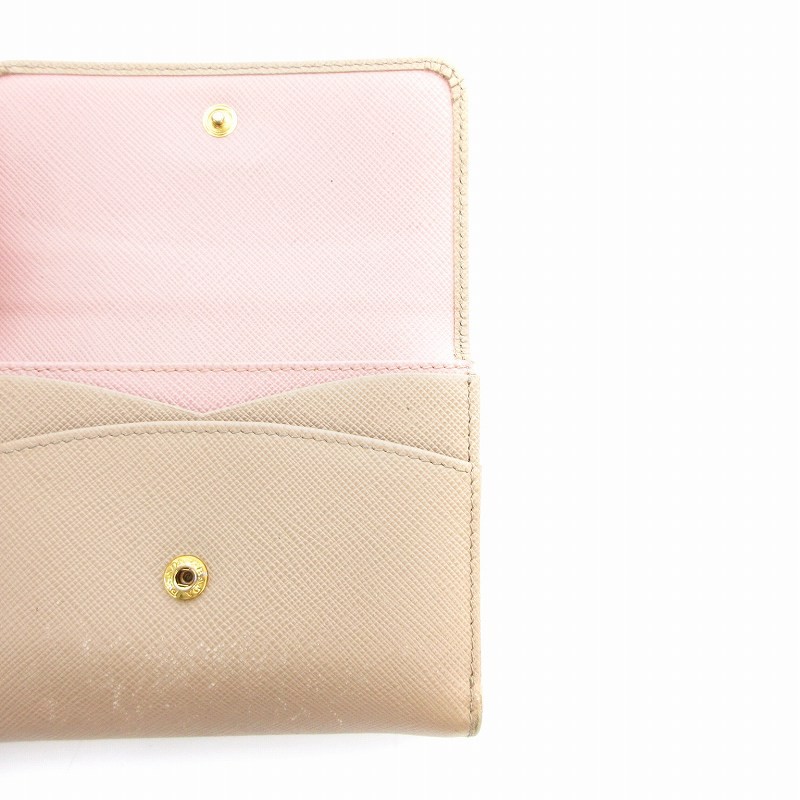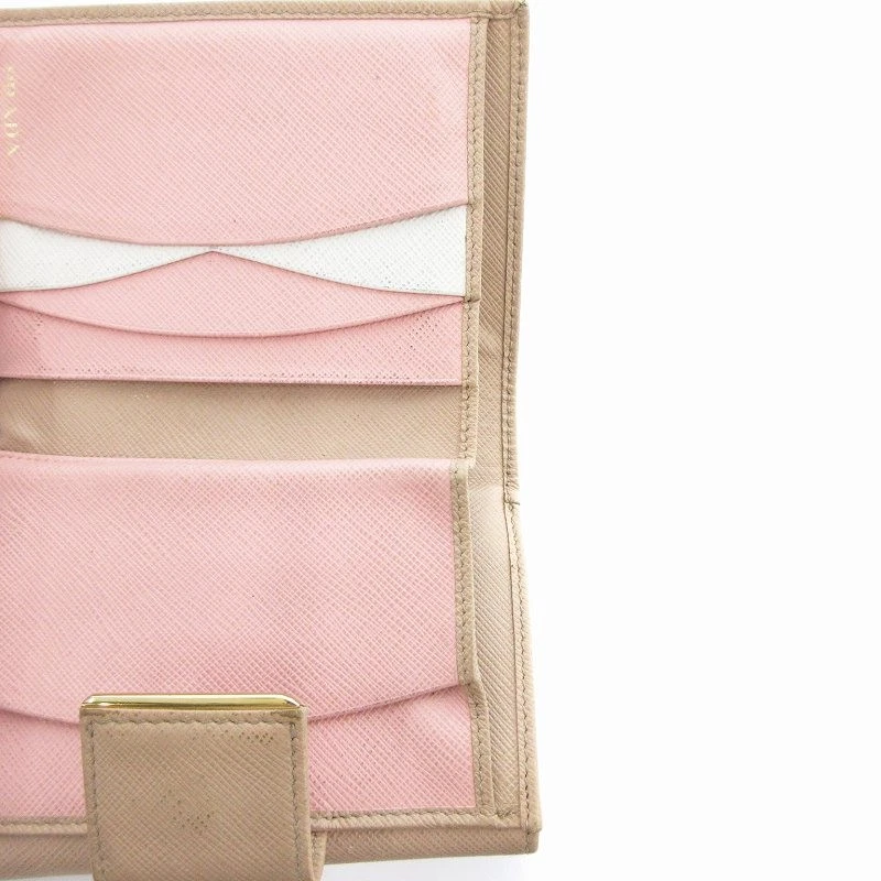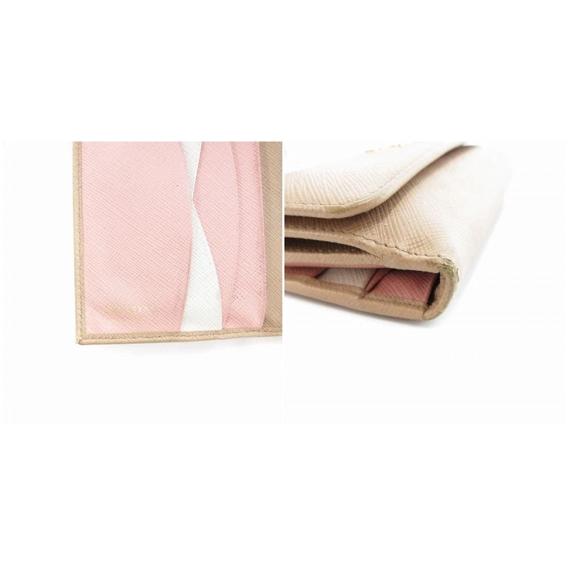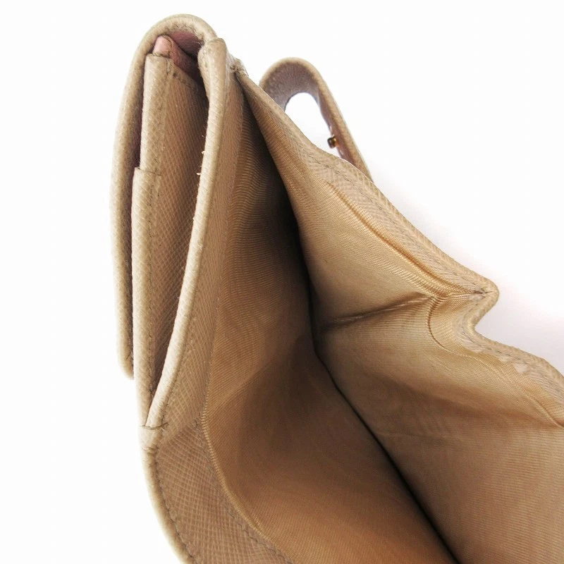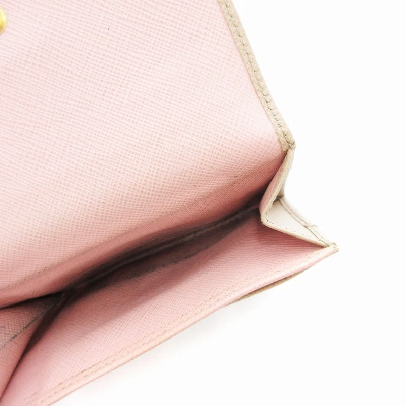Prada Saffiano Leather Beige Women Wallet with Hook Y0722 Pre-Owned