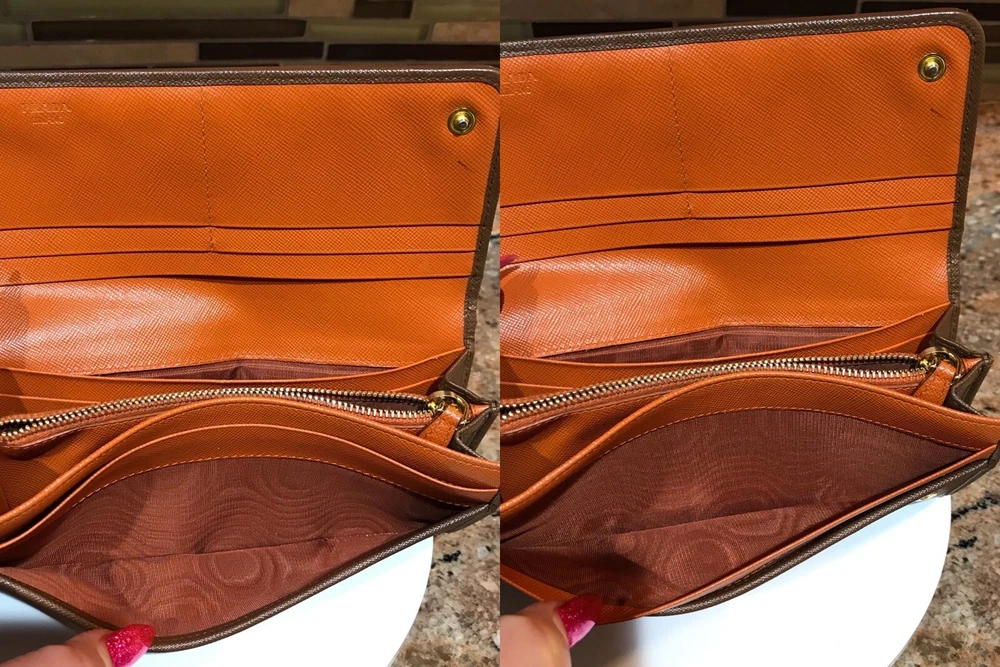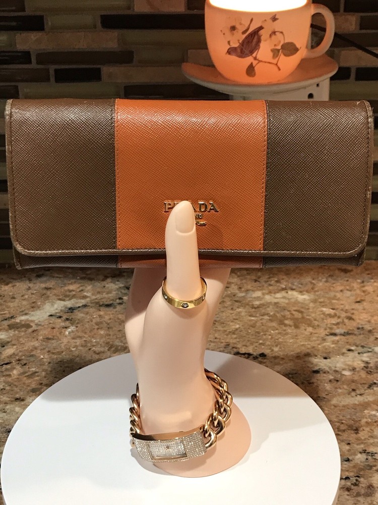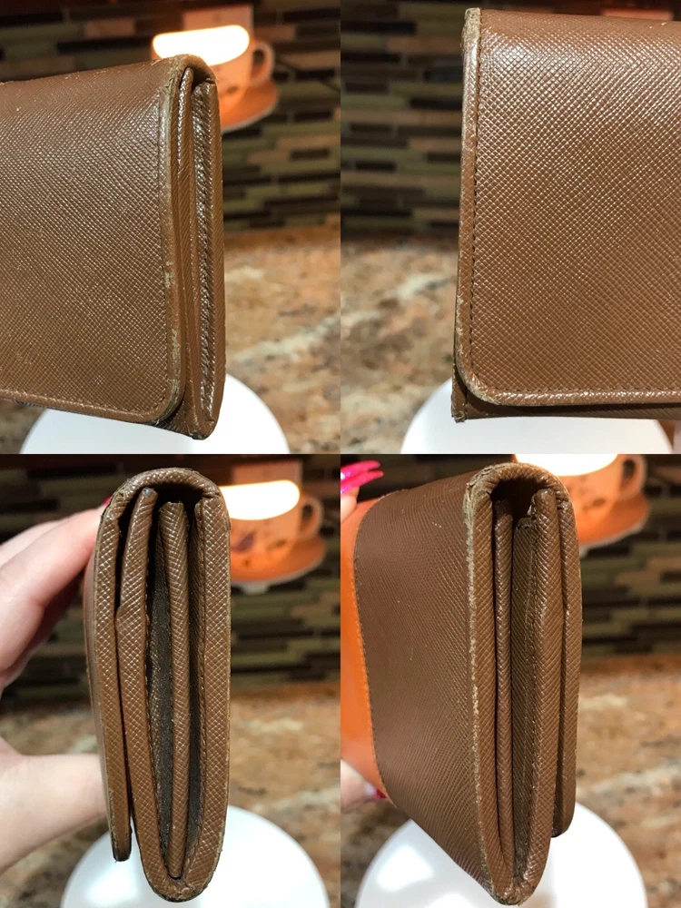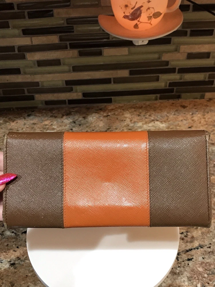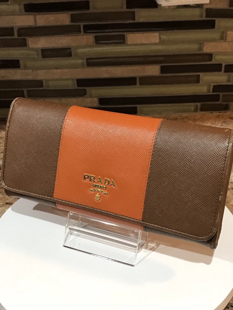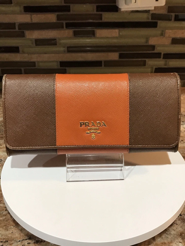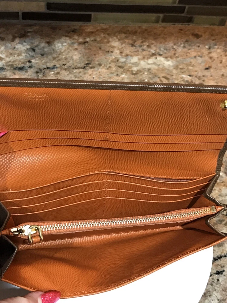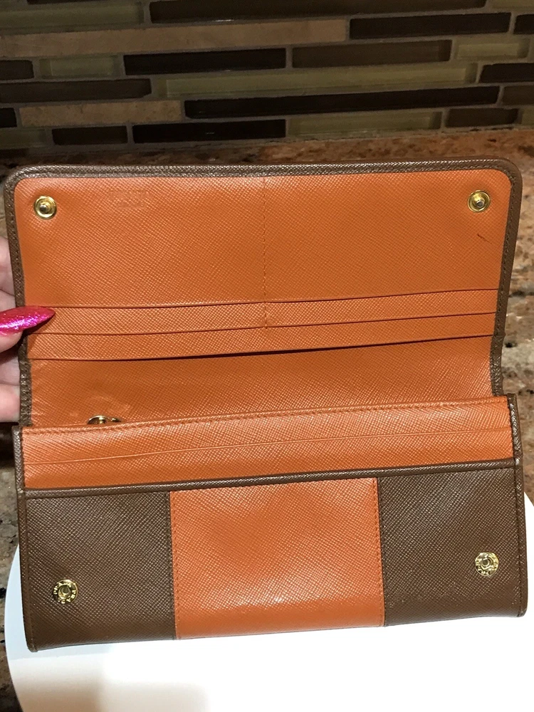 -Condition: Pre-owned ✅ ; in excellent condition! ❤️ -Wear on corners/edges & coin residue; scratches/scuffs -Signature Prada 🔥😍 -Material: Saffiano Leather -Color: Multicolor 🧡 -Two Tone 🔥 -Separated compartments -Credit card slots -Gold Hardware -She’s a stunner 😍✨ -Reasonable offers are welcome 🤗 -This is pre-loved item that has signs of wear, please kindly adjust your expectations 💕- No Returns