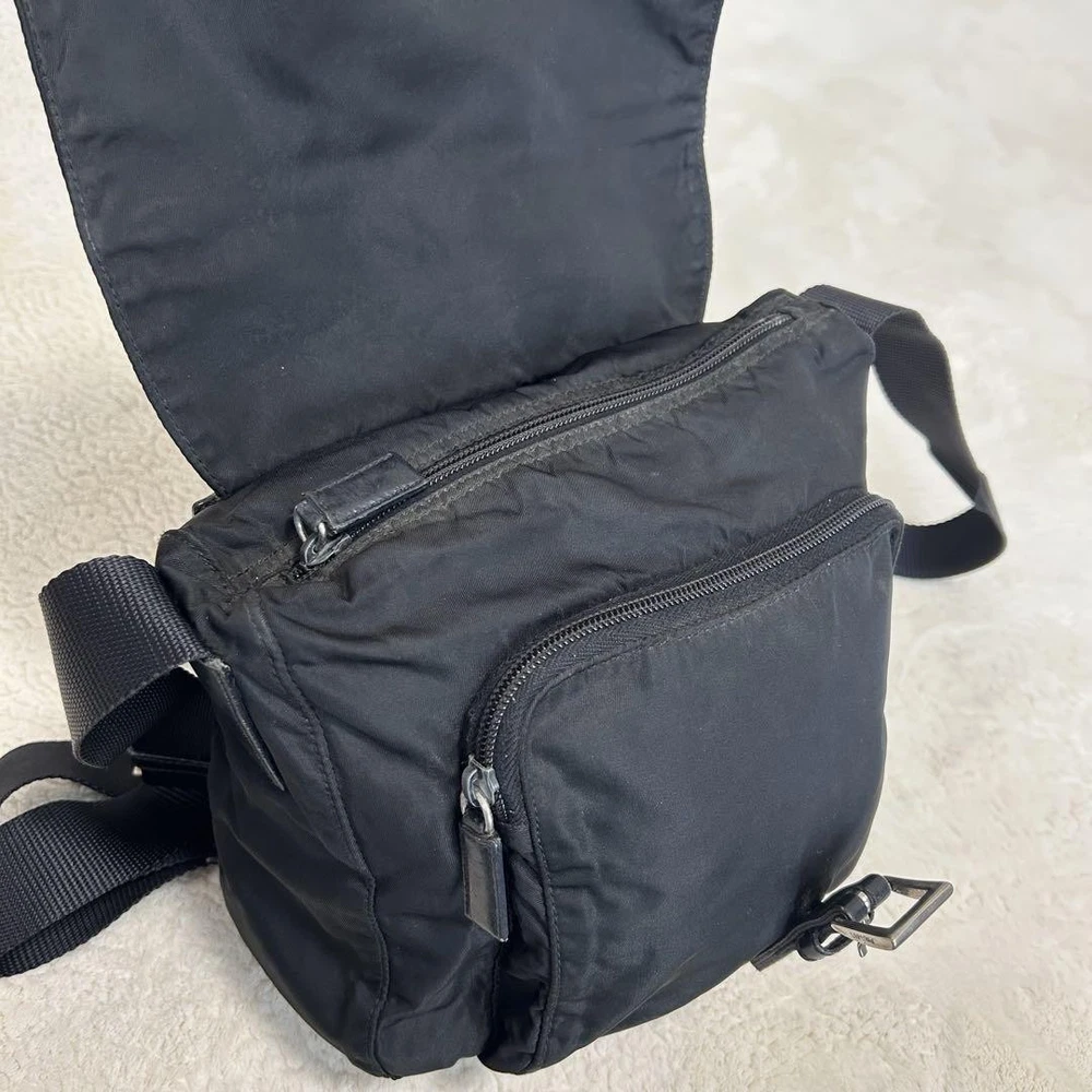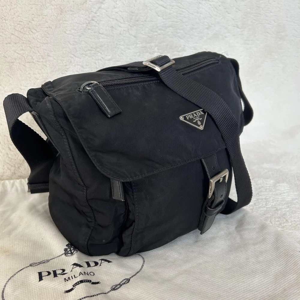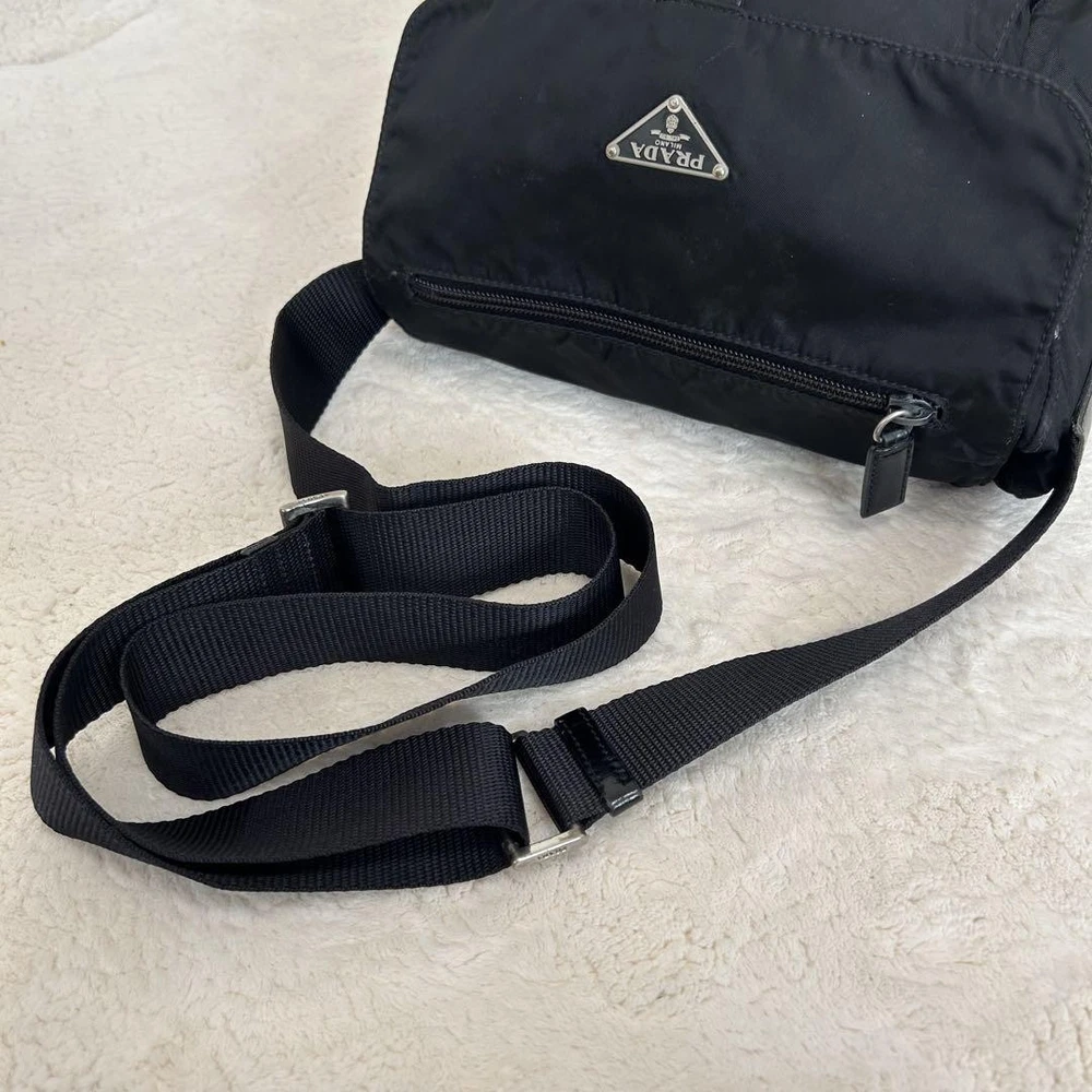 Prada Testo Nylon Shoulder Bag with Black Leather String