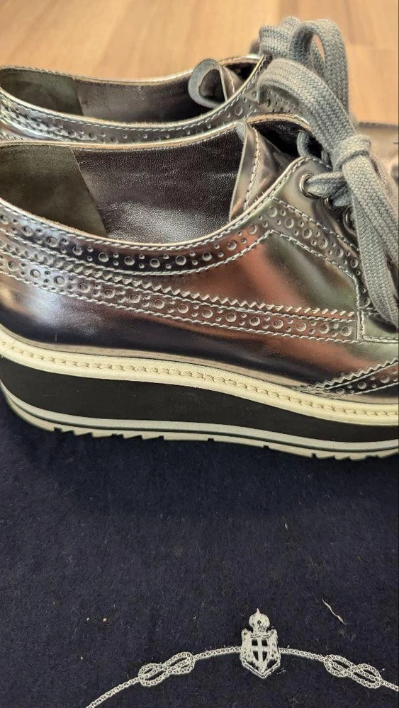 Prada Silver LaceUp Shoes Women's 22cm US 4.0 Condition /Used Key Features Prada Lace-Up Shoes, Size 35 (22cm), Silver. These stylish shoes feature a classic lace-up design with a silver exterior material. Please note there are some scuffs on the toe area, as shown in the photos. The shoes are stored at home and inspected manually, so minor imperfections may exist. They come with either Yu-Yu Mercari Bin or Rakuraku Mercari Bin for shipping, aiming for prompt delivery. Ideal for fashion-conscious individuals, these shoes are perfect for casual or formal occasions. Please understand that returns or cancellations are not accepted after purchase to prevent issues. Item Specifics: - Brand: Prada - Product Type: Shoes - Size: 22cm (Size 35) - Exterior Material: Silver - Department: Women - Closure: Lace-up - Condition: Used, with toe scuff - Color: Silver - Handmade: No - Country/Region of Manufacture: Japan Specifications Brand Prada Country Japan US Shoe Size 4 Department Woman UK Shoe Size 3.5 EU Shoe Size 34 JP Shoe Size 22 Product Description Item Title Men 4.0US Prada Lace-Up Shoes Sneakers 22Cm Payment Supports managed payments Please pay within 5 days after auction is finished. About Us We are located in Japan. It's our pleasure to make you happy by proposing our recommend item. If you have any questions or request about items, please feel free to ask us. International Buyers - Please Note: -Import duties, taxes, and charges are not included in the item price or shipping charges. These charges are the buyer's responsibility. -Please check with your country's customs office to determine what these additional costs will be prior to bidding/buying. -These charges are normally collected by the delivering freight (shipping) company or when you pick the item up - do not confuse them for additional shipping charges. -We do not mark merchandise values below value or mark items as - gifts - The US and International government regulations prohibit such behavior. Thank you for your understanding.