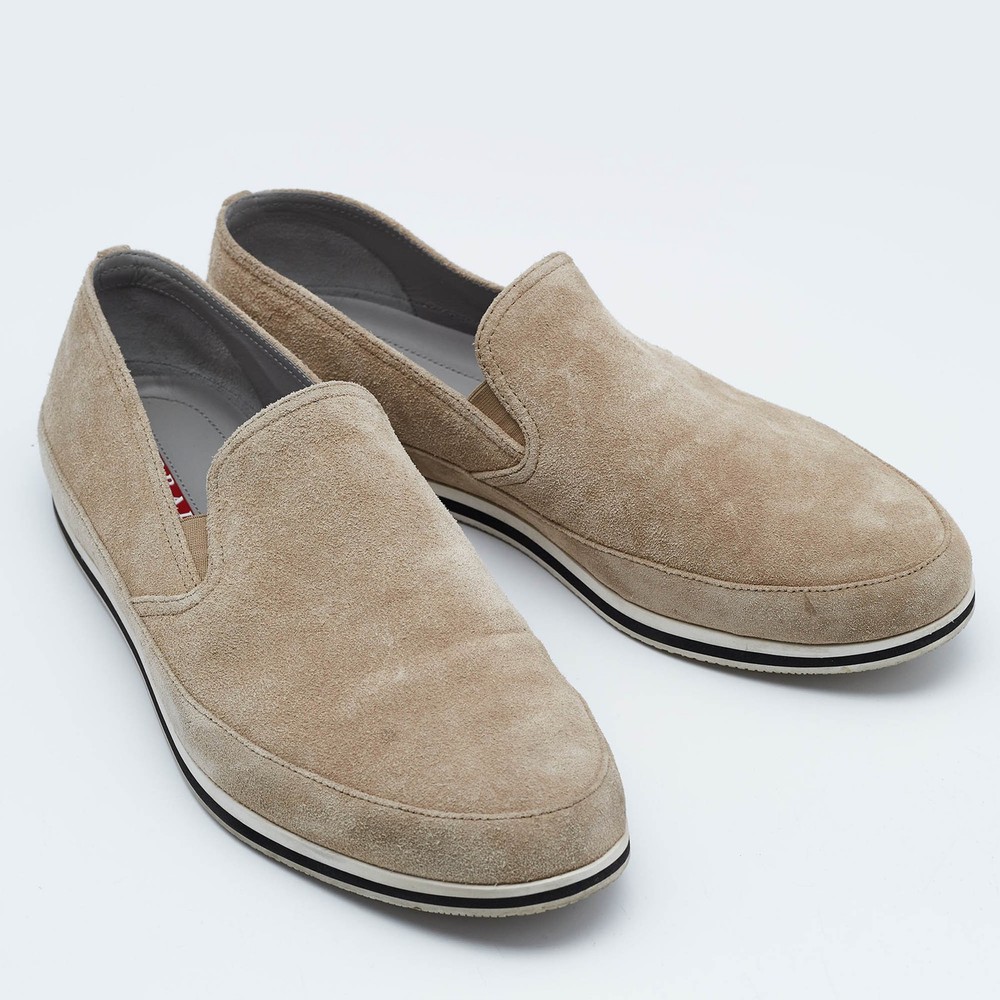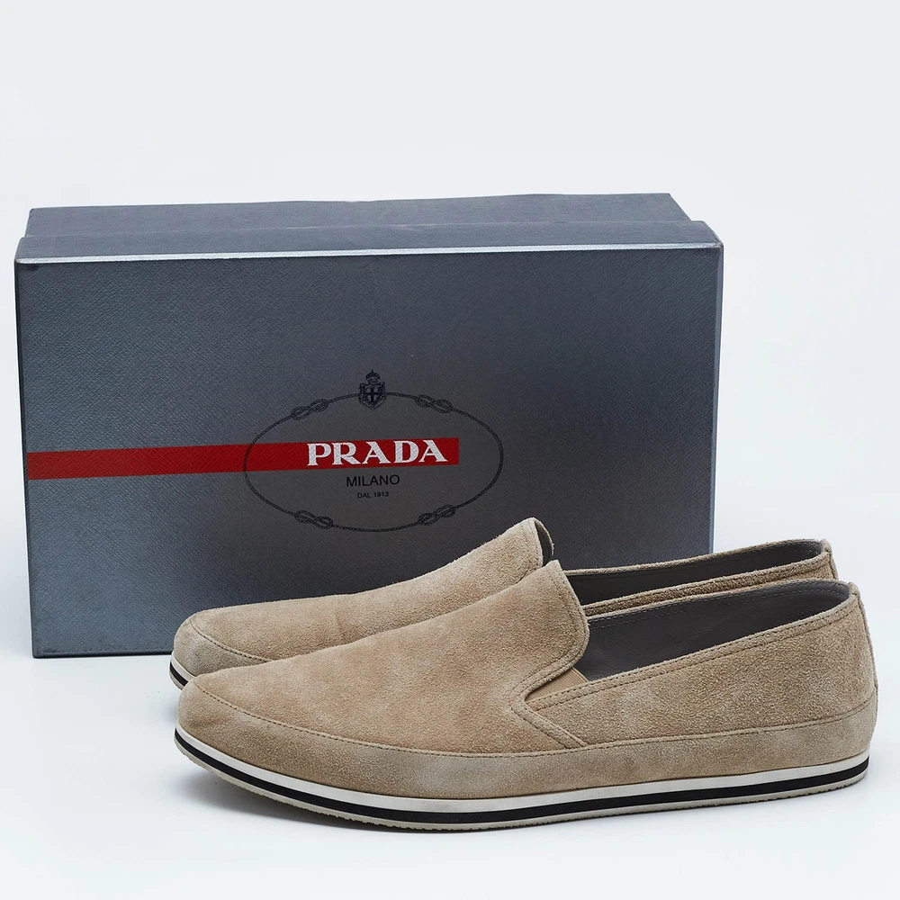 Prada Sport Beige Suede Slip-On Sneakers in Size 45.5