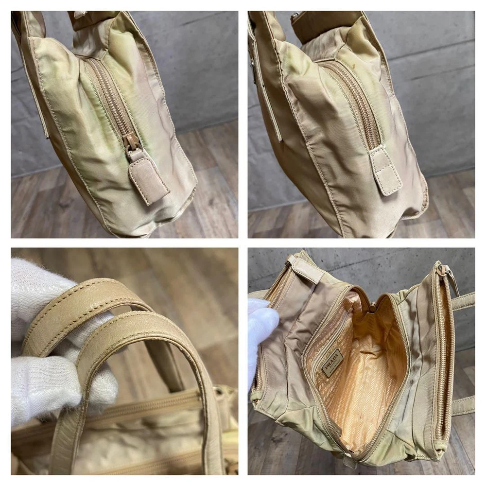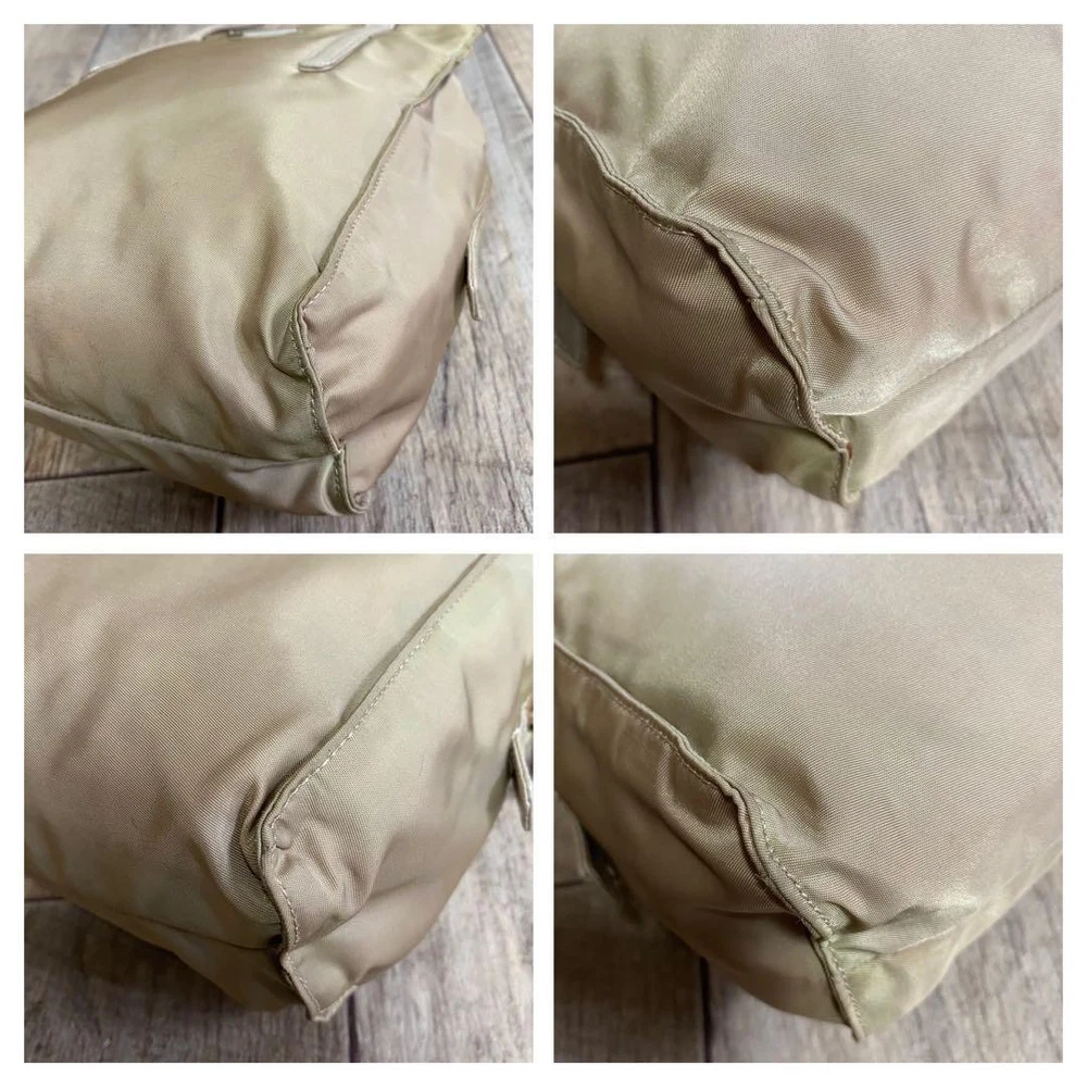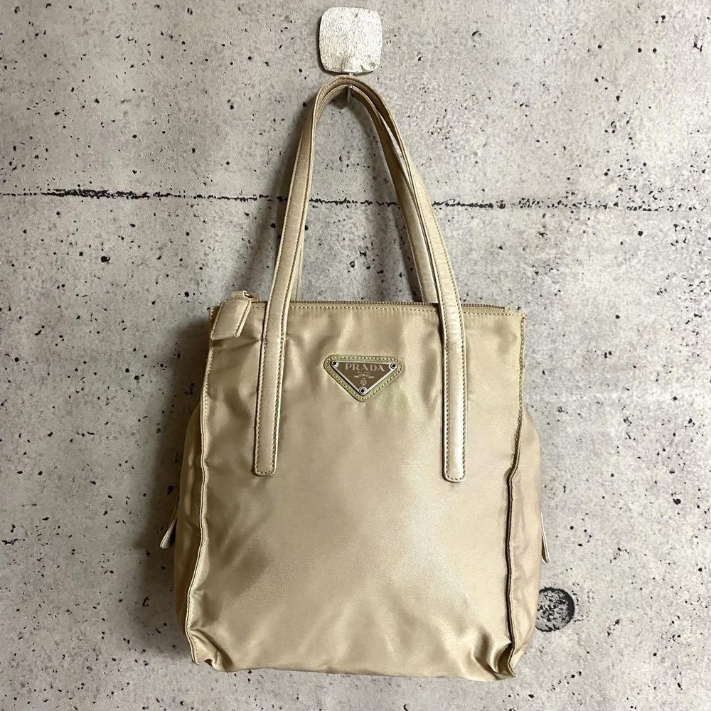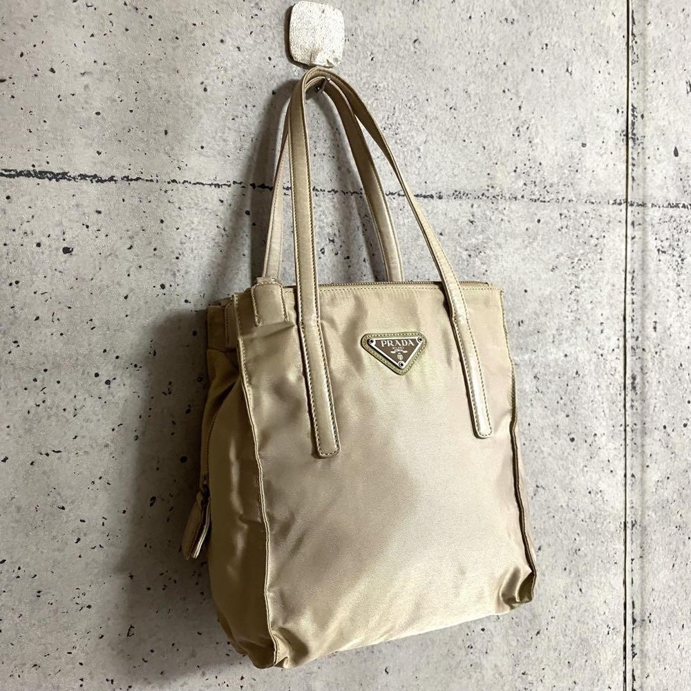 Prada Testo Nylon Handbag Triangle Logo Tote Bag Beige