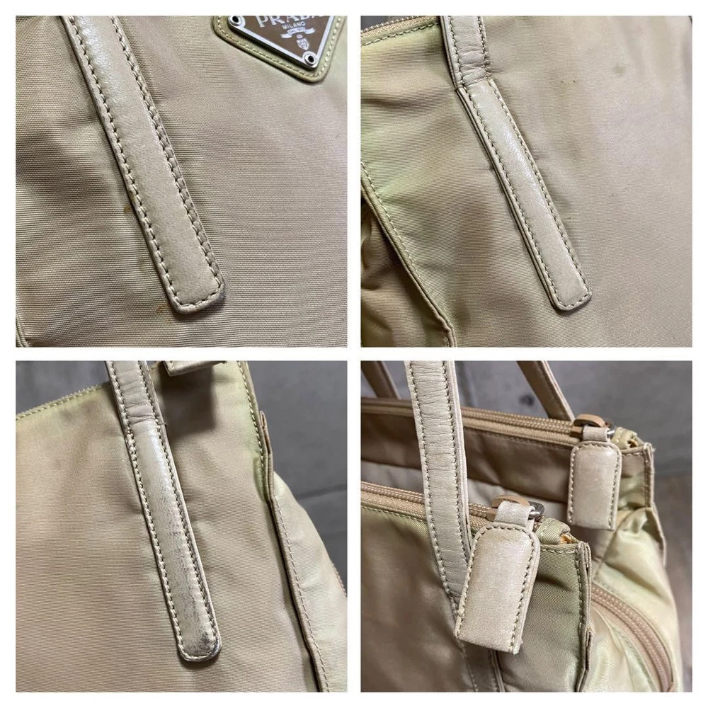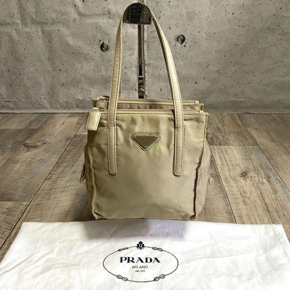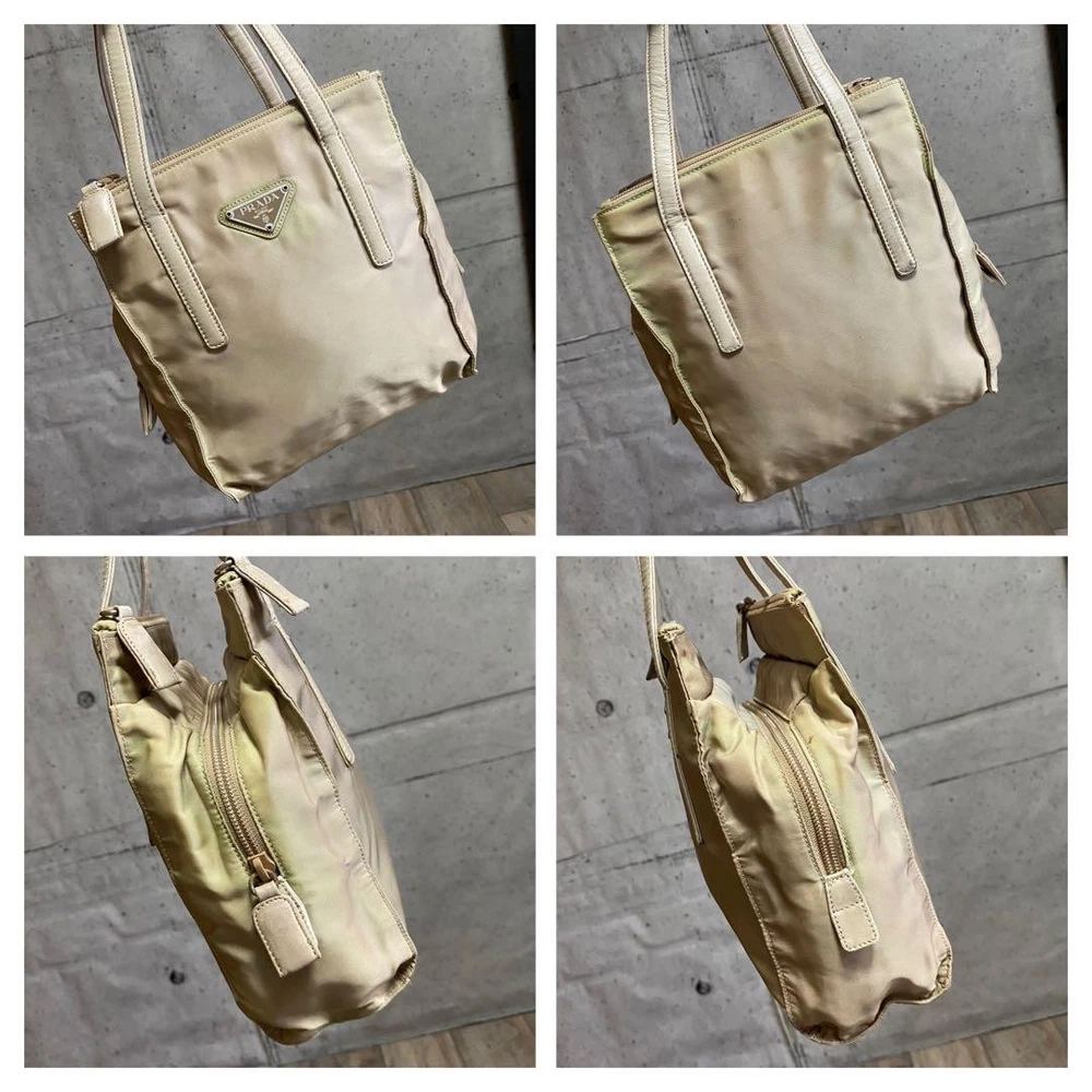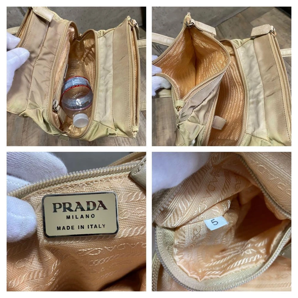 Prada Testo Nylon Handbag Triangle Logo Tote Bag Beige