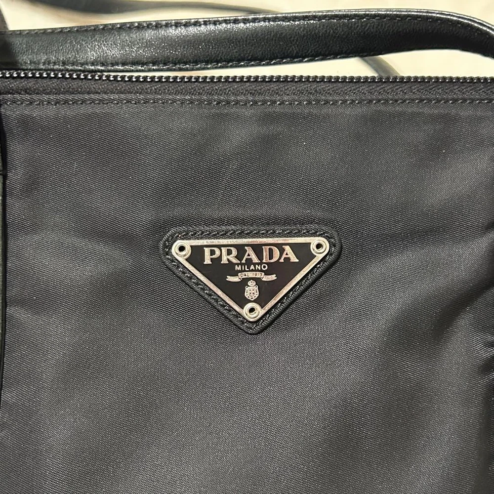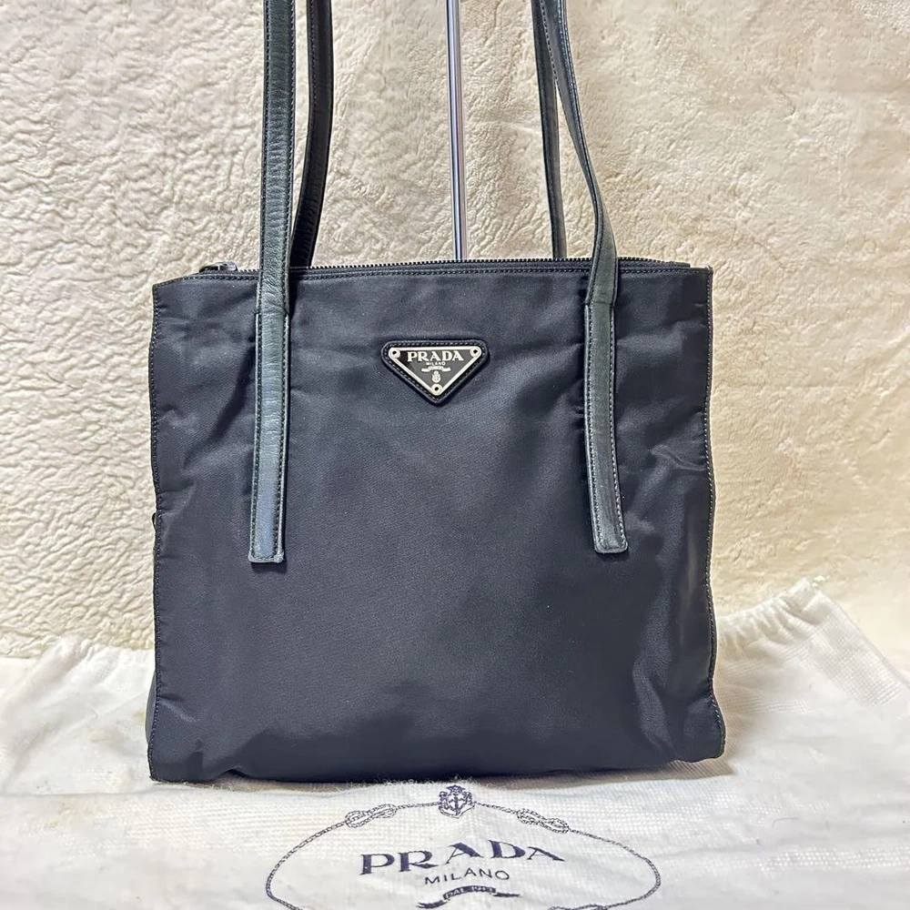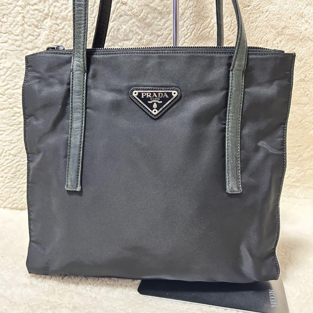 $ 251.19Prada Black Nylon Tote Bag with Triangle Logo Plate Handbag
