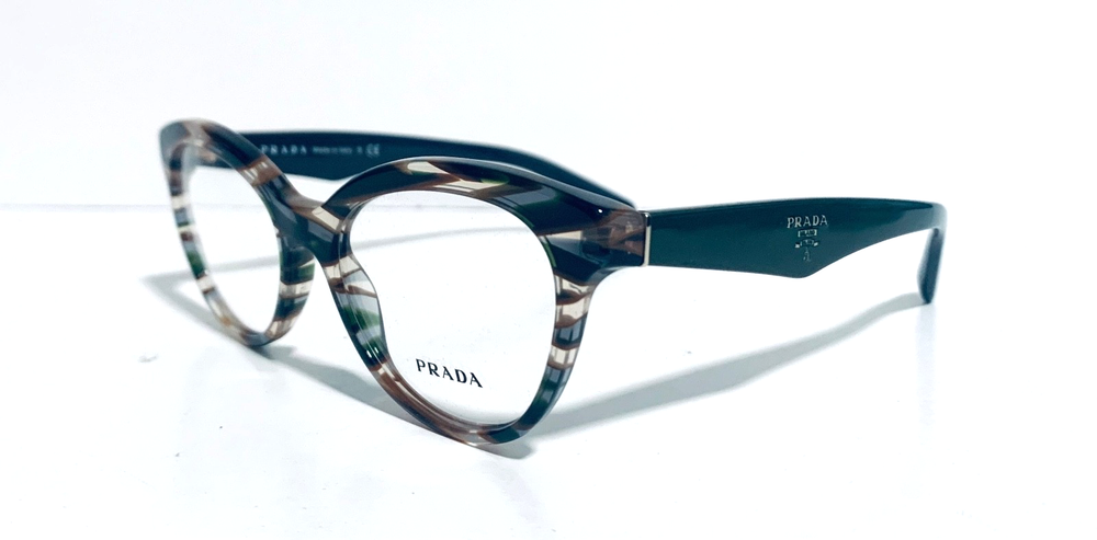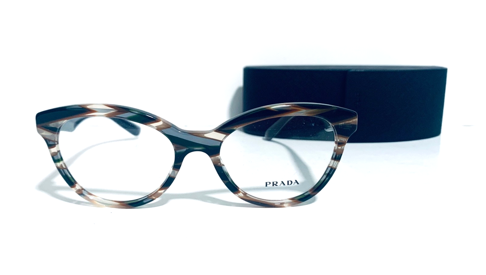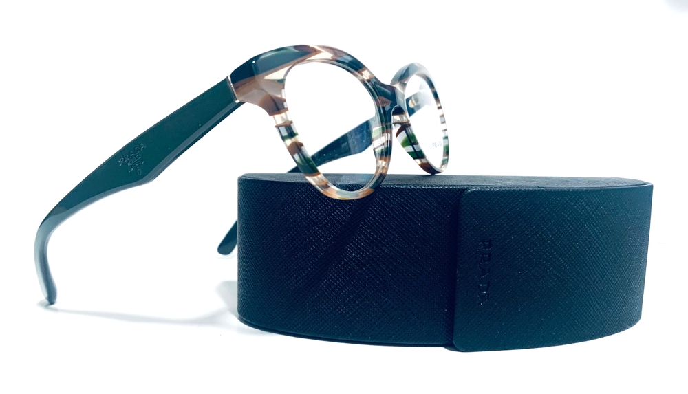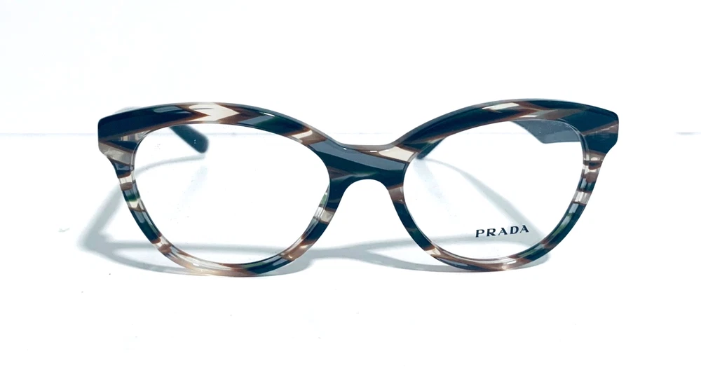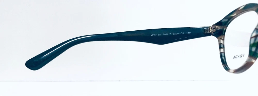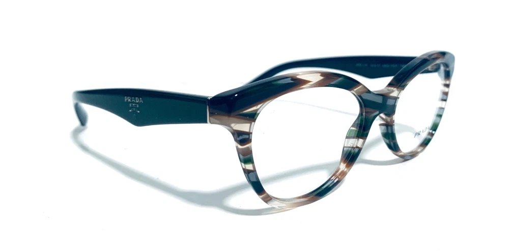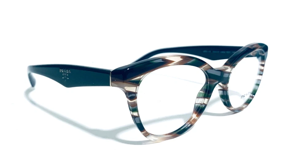 RACCOON STASH WELCOMES YOU! 100% Money Back Guarantee! NEW AUTHENTIC PRADA VPR 11R VAO-1O1 Transparent Striped Green Brown Top / Green Arms Cat Eye RX Eyeglasses Frame MADE IN ITALY Model: PRADA VPR 11R VAO-1O1 Color: Transparent Striped Green / Brown Lens Color: Clear RX Demo Size: 50-17-140 MM The frame is brand new, never used or worn! COMES WITH ORIGINAL PRADA CASE and PRADA Cleaning Cloth. All items are packaged carefully for shipping to prevent any damage during transportation. International Buyers - Please Note: Import duties, taxes, and charges are not included in the item price or shipping cost. These charges are the buyer's responsibility. Please check with your country's customs office to determine what these additional costs will be prior to bidding or buying. If you have any questions please feel free to ask. Thank you for choosing us for your optical needs! Item ID: RV 012_010