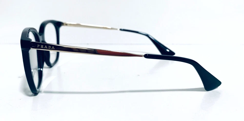 RACCOON STASH WELCOMES YOU! 100% Money Back Guarantee! NEW AUTHENTIC PRADA VPR 11T 1AB-1O1 Shiny Black Top / Gold Arms Cat Eye RX Eyeglasses Frame MADE IN ITALY Model: PRADA VPR 11T 1AB-1O1 Color: Black on Gold Lens Color: Clear RX Demo Size: 51-17-140 MM The frame is brand new, never used or worn! COMES WITH ORIGINAL PRADA CASE and Generic Cleaning Cloth. All items are packaged carefully for shipping to prevent any damage during transportation. International Buyers - Please Note: Import duties, taxes, and charges are not included in the item price or shipping cost. These charges are the buyer's responsibility. Please check with your country's customs office to determine what these additional costs will be prior to bidding or buying. If you have any questions please feel free to ask. Thank you for choosing us for your optical needs! Item ID: RV 010_087