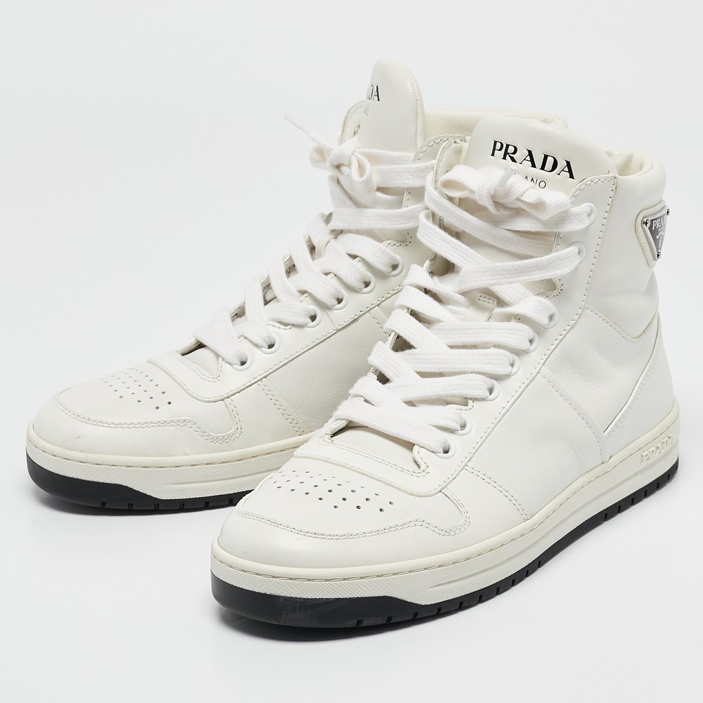 Prada White Leather New Avenue High Top Sneakers EU 38
