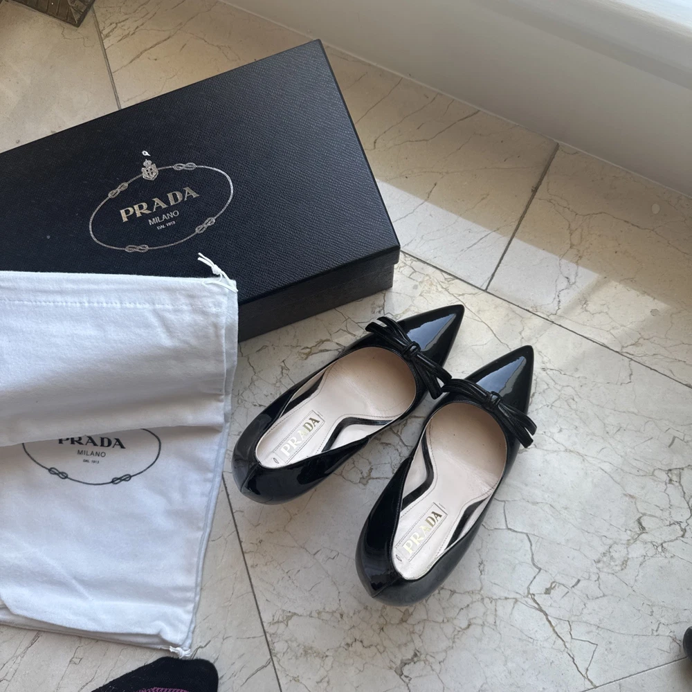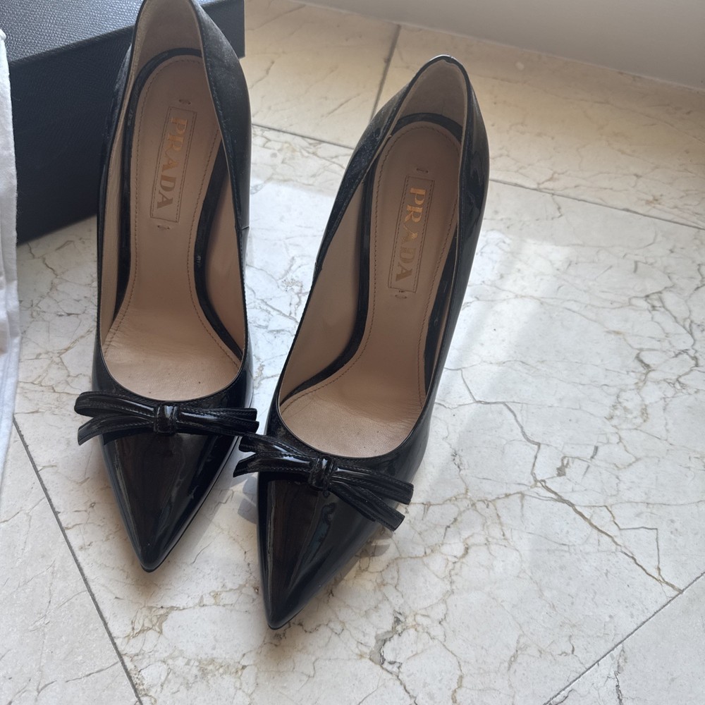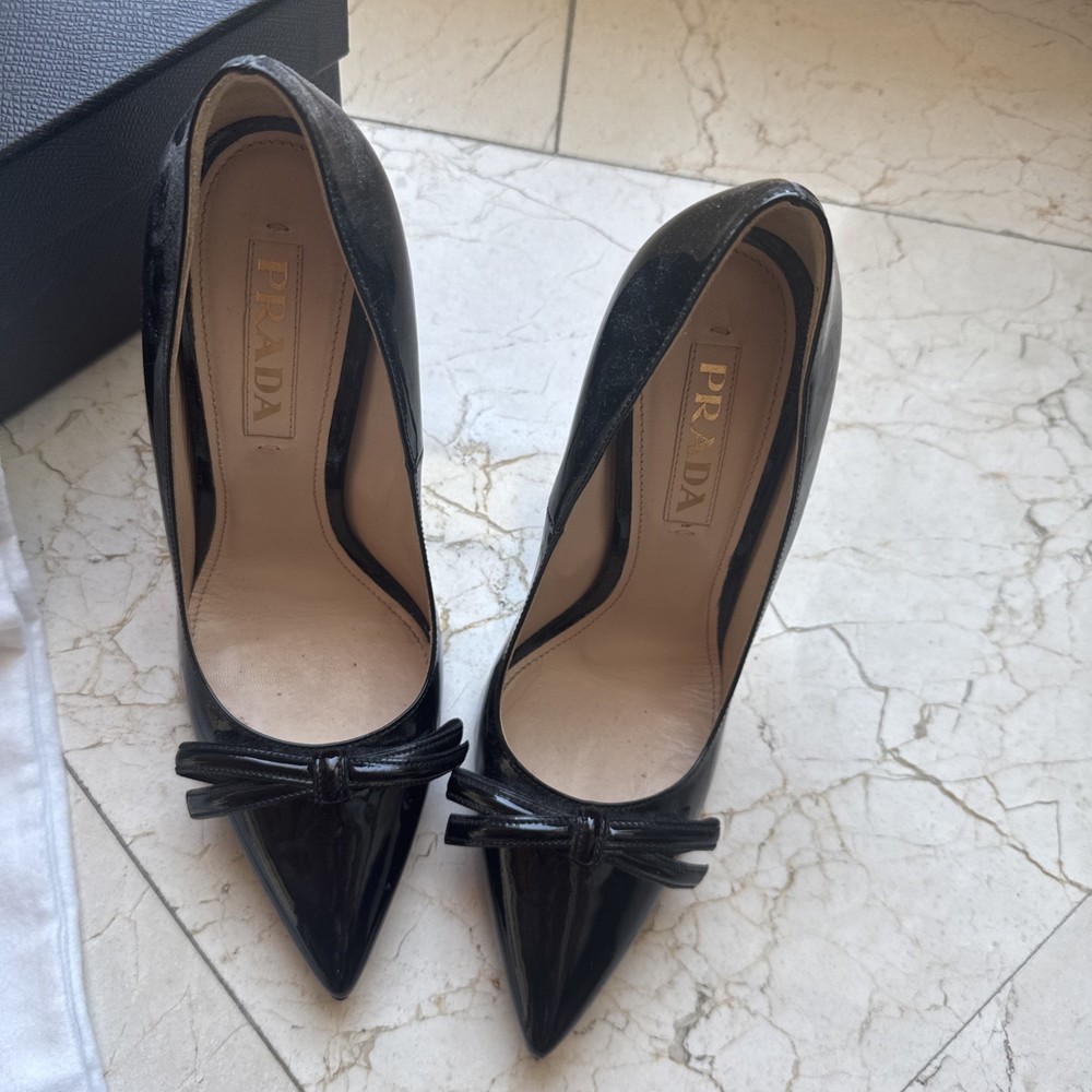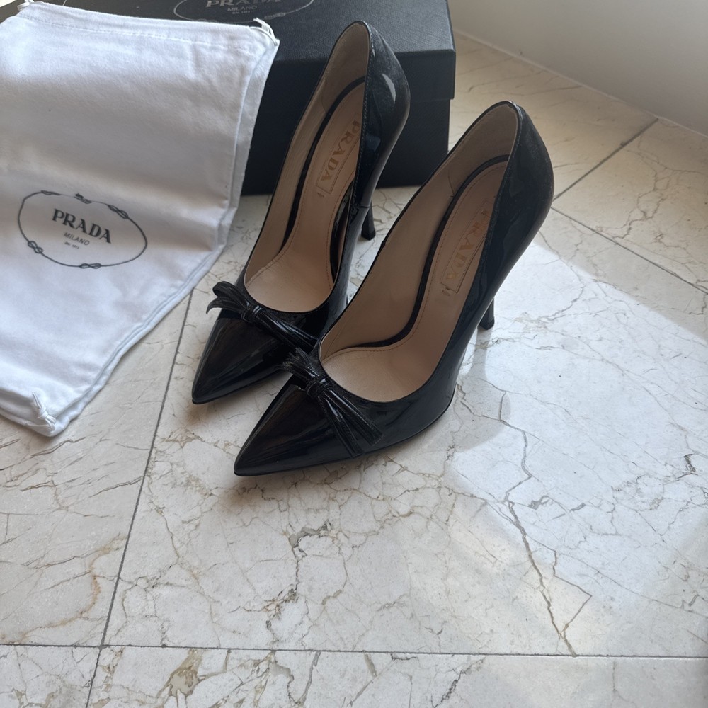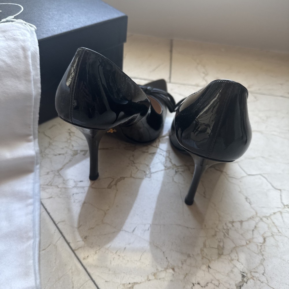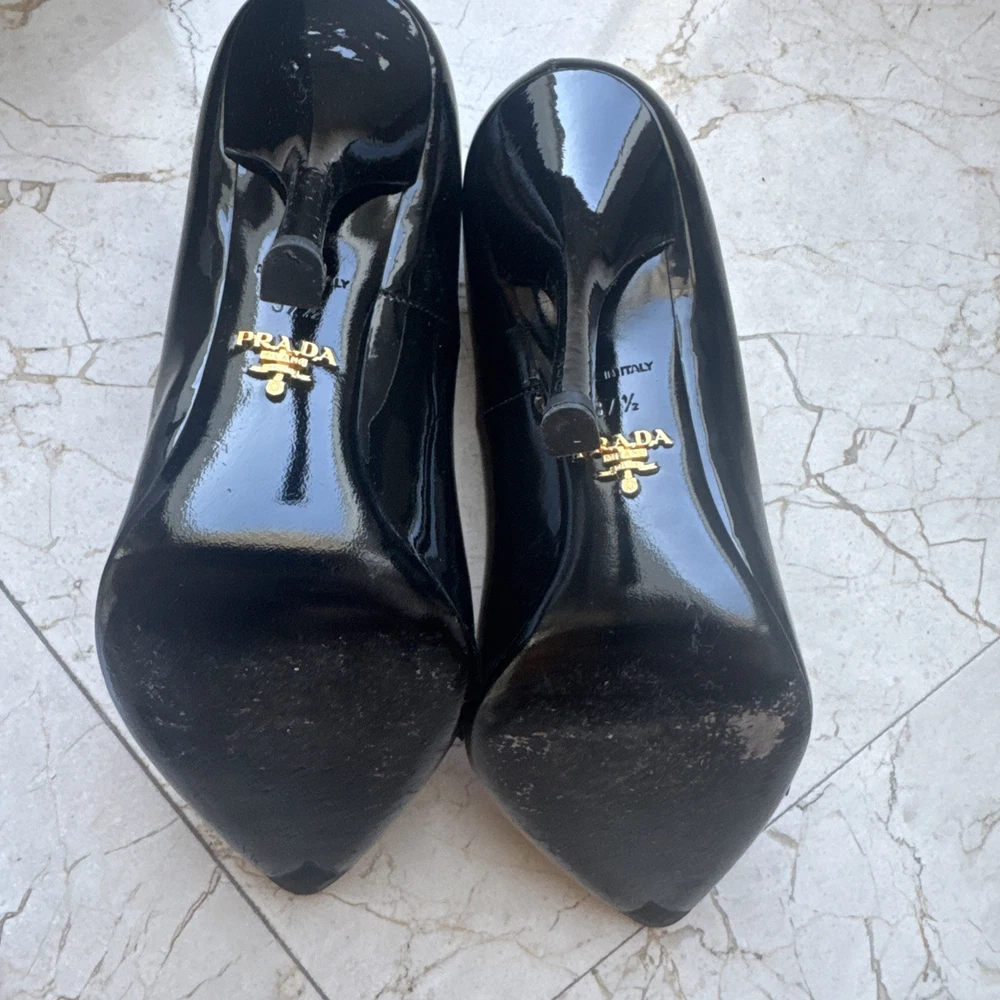 US Shoe Size: 7.5 Color: Black Department: Women EU Shoe Size: 37.5 Upper Material: Patent Leather Style: Pump Type: Heel Brand: PRADA