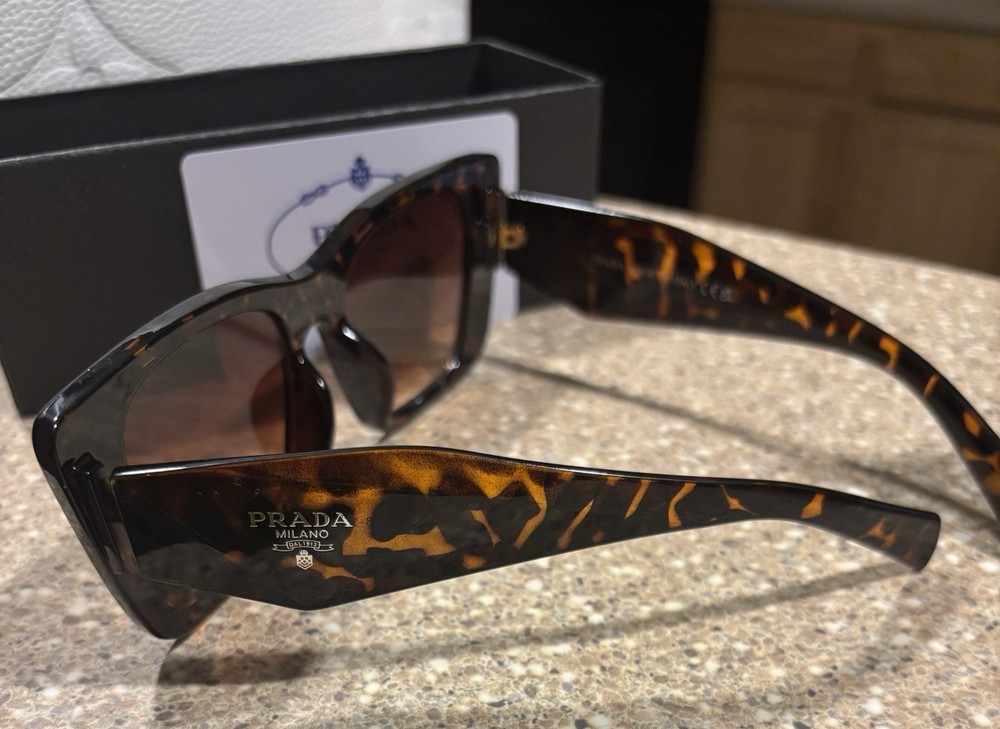 The product is a pair of Prada sunglasses designed for women, featuring a stylish tortoise theme and brown frame color. These sunglasses embody a sophisticated and fashionable look, perfect for adding a touch of luxury to any outfit. Prada's reputation for quality and design is reflected in the sleek and modern design of these sunglasses, making them a desirable accessory for women looking to elevate their style.
