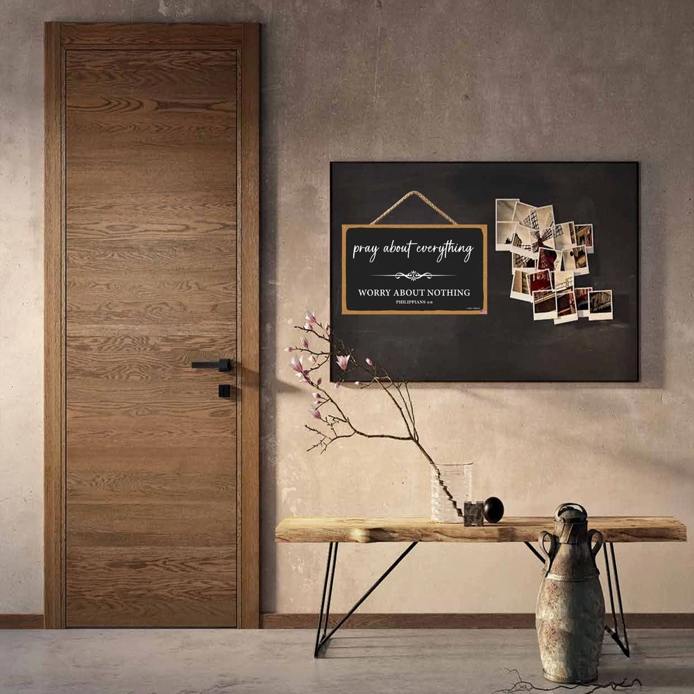 Pray About Everything Sign Farmhouse Style Bible Verse Wall Decor Wooden Sign 11 x 6 inch Wooden Home Decoration Church Decoration (Black-4) Product Details Color: Black-4 Brand: SEIFUD MPN: Does not apply UPC: Does not apply EAN: Does not apply Color: Black-4 Brand: SEIFUD Material: Wood Theme: Love Recommended Uses For Product: Home decoration, gifting, religious or motivational decoration Mounting Type: Wall Mount Product Dimensions: 11"L x 6"W Shape: Oblong Item Weight: 0.15 Kilograms Style: Art Deco Pre-printed: Pray About Everything, Bible Verse Included Components: Jute Rope Item Weight: 5.3 ounces Batteries required: No High-precision printing: achieve vivid colors, realistic patterns and waterproof effect. Perfect signage for indoor and outdoor hanging. Golden ratio: 11x6 inches (28cm x 15.2cm) Configuration:Comes with a 42cm long jute rope, ready to hang on the wall. Ideal Gift: The wooden material is light weight, easy to see and beautiful in appearance. It will be a great gift for friends or family. Suitable for decoration in many places: hang in the center of doors, door and drawer handles and bathrooms, wall hooks, flower and ornament displays, table center pieces and chairs, etc. It looks wonderful and embellishes the most perfect home.