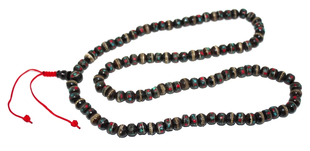 Adjustable wrist mala bracelet This listing is for a Domesticated Bos Grunniens yak bone mala Necklace Prayer beads for meditation. The Measurement of Each embedded bead is 6mm-8 mm. This prayer beads necklace is Handmade in the United States by us (Tibetannepalesejejwelry) Prayer Mala or beads are usually used by all religions around the world such as Hinduism, Buddism, Catholicism, Islam, Sikhism. Since the beads are fingered in an automatic manner, they allow the user to keep track of how many prayers have been said with a minimal amount of conscious effort, which in turn allows greater attention to be paid to the prayers themselves. Circumference of the Mala when fully closed is 28 inches