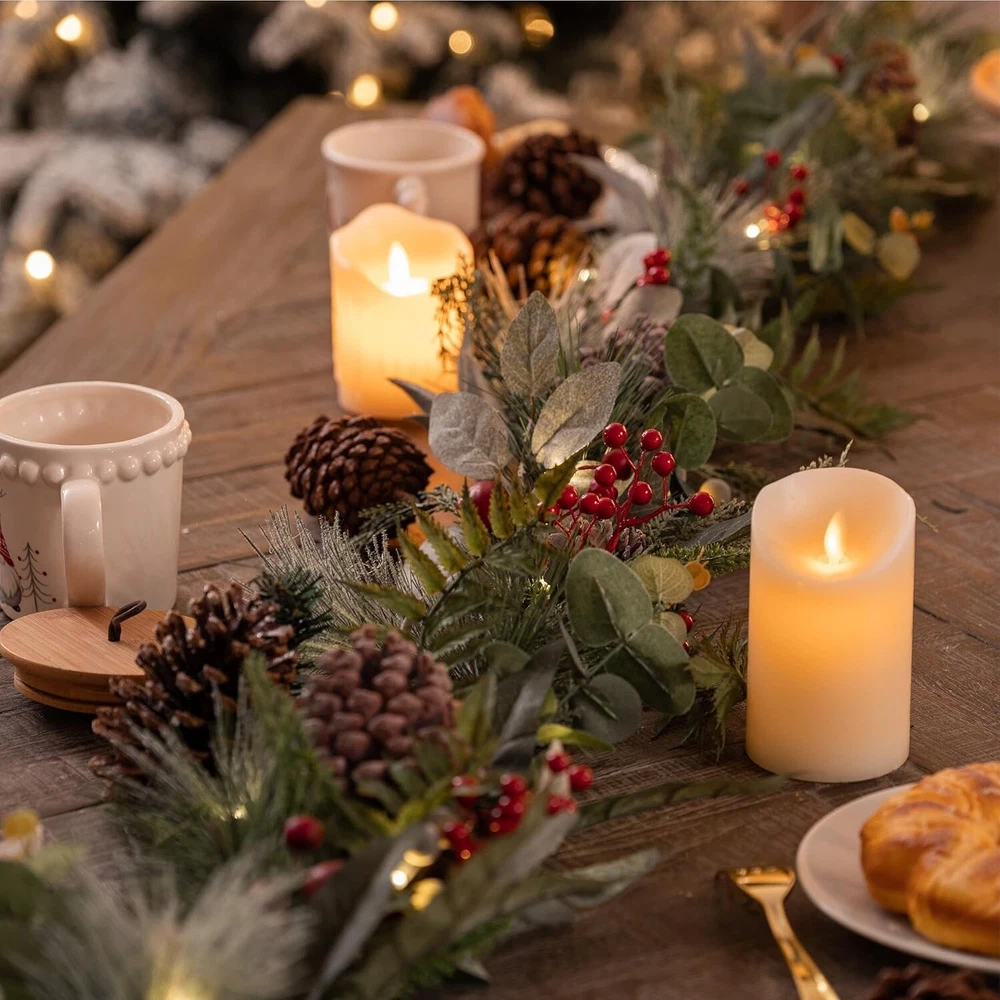 Here's a more polished and professional version of your eBay product description: 6ft Christmas Garland with LED Lights – Featuring Pine Cones, Red Berries, and Waterproof Design – Perfect for Holiday Décor Enhance your holiday season with this beautifully crafted 6ft Christmas garland from Valery Madelyn , a brand known for its original, nature-inspired designs. Designed to bring the magic of the forest into your home, this garland features a harmonious blend of rich red and brown tones, pine cones, red berries, and more, creating a festive, woodland-inspired atmosphere that radiates Christmas cheer. Key Features: Elegant & Original Design: Featuring a lush base of artificial crestwood fir branches, this garland is adorned with seasonal elements such as pine cones, red berries, and other natural accents, creating a sophisticated yet cozy holiday look. Automatic Timer Function: Enjoy convenience with the built-in automatic timer. Simply switch the garland to the "ON" position, and the lights will illuminate for 6 hours before automatically turning off for 18 hours. The lights will light up at the same time each day when initially activated, offering effortless operation. Versatile Lighting Effects: With 20 warm yellow LED lights and a control button offering 8 different lighting modes, this garland allows you to customize the ambiance to suit your holiday mood—whether you want a soft glow or a more vibrant lighting display. Indoor & Outdoor Use: Designed for both indoor and outdoor spaces, this garland can be draped over mantels, stair railings, windows, or even used as a centerpiece for your table. It also makes a perfect addition to your front entrance, welcoming guests with festive warmth. Waterproof & Durable: The garland's battery pack is rated with an IP44 waterproof standard, ensuring reliable performance in both indoor and outdoor settings, even during wet weather conditions. Perfect for Holiday Décor & Gifting: This elegant garland is the ideal addition to any Christmas display. It pairs beautifully with other Valery Madelyn products such as wreaths, stockings, tree skirts, and ornaments, allowing you to create a cohesive holiday theme throughout your home. It also makes a thoughtful gift for anyone looking to elevate their seasonal décor. Package Includes: 1 x 6ft Christmas garland 20 LED warm yellow lights with 8 lighting effects Battery pack with automatic timer (IP44 waterproof) Note: To display the garland at its best, remove it from the box and carefully fluff and arrange the branches for a fuller, more natural look.