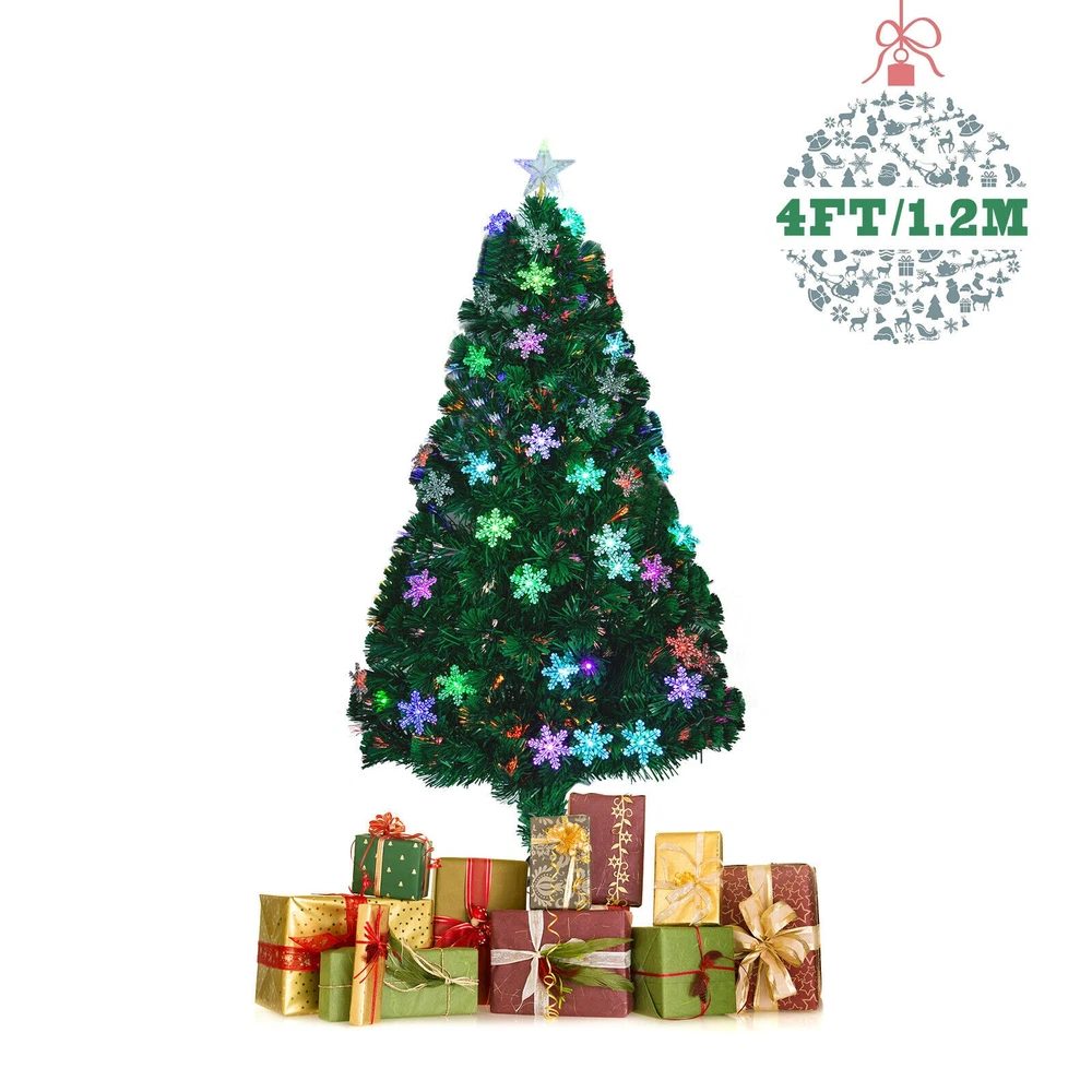 4-7ft Pre-Lit Fiber Optic Christmas Tree with 100 LED Snowflakes and Star