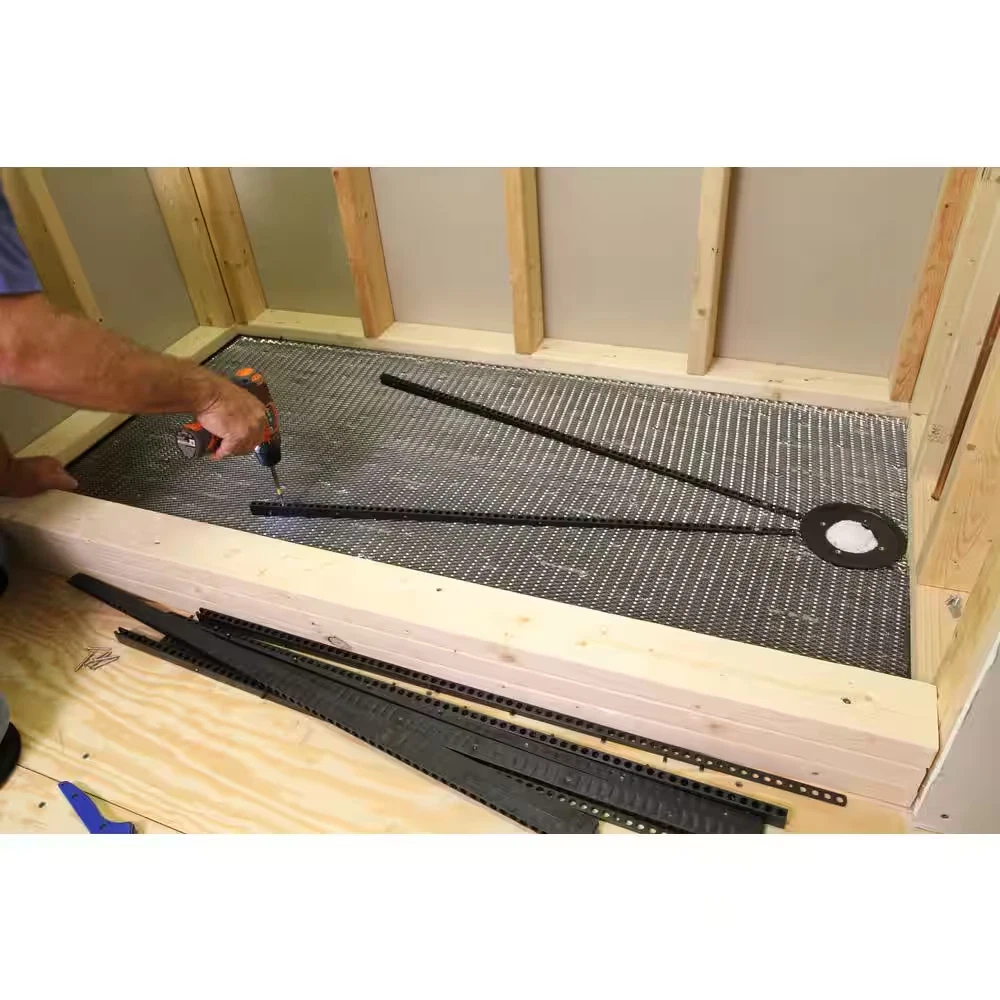 Use with any shower base pan liner system Built-in slope ensures proper drainage Includes hardware for installing on wood or concrete sub-floors Pre-Pitch is a sloping guide tool that creates a code compliant, sub floor pitched mudbed used underneath pan liner material to direct water towards weep holes that are an integral part of all shower floor drains. Pre-Pitch can also be used with roll-on liquid waterproofing and for creating thin-bed type foundations when using sheet membranes as water control. For standard shower sub floor areas with a centered drain or when the drain is within 36 in. of any wall. Each stick measures 1/8 in. to 7/8 in. tapered x 36 in. length. Sold 6 per package. Screws, 2-sided tape and complete instructions included. Creates the proper sub floor pitch insuring pan liner drainage Molded of high impact plastic with a reinforcing design that is lightweight and non-rotting; used on both wood and concrete subfloors Built-in pitch forms the perfect sub floor slope needed without possessing the necessary skills required Packaged with all the necessary hardware for quick and accurate installations