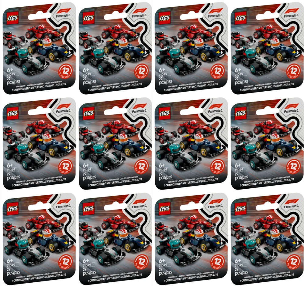 You will receive the Complete Set of (12) Lego F1 Collectible Race Cars 71049 without duplicates. Each Formula 1 race car is brand new factory sealed in its original cardboard box. Individual cars are available for pre-sale here . Pre-Sales will begin shipping on May 1st 2025 . Shipping is combined at checkout and free for orders $25 or more. Returns are free for 30 days. Questions will be responded to within one day. Product Details: Hit the racetrack to enjoy the thrill of Formula 1 racing with this range of LEGO F1 Collectible Race Cars (71049) mystery boxes for kids. This is a fun gift for boys and girls aged 6 and up to inspire great storytelling and hours of playtime on their own or with friends. There is 1 surprise LEGO F1 Collectible Race Car in each vehicle kit and a total of 12 to collect: an F1 car, an F1 ACADEMY car, and 10 cars from the Formula 1 teams: RB20, Mercedes-AMG, Ferrari, McLaren, Aston Martin, Alpine, Williams, VCARB, Sauber and Haas. Each toy model car comes in the colors of an F1 team, with team logos, a large helmet in the cockpit and moving wheels for F1 fans to stage exciting races. Kids and car model collectors can build, display and play out action with these unique and amazing toy vehicles. Collectible F1 toy race car – Kids aged 6 and up can stage exciting action with these LEGO F1 Collectible Race Cars, with 1 vehicle kit in every mystery box Formula 1 model building set for kids – Car fans can expand their collections with 1of 12 F1 race cars in every box, including cars from 10 F1 teams, plus an F1 car and an F1 ACADEMY car Moving wheels – Each LEGO vehicle comes with an F1 helmet in the cockpit and moving wheels for kids to stage their own races LEGO car models to inspire creative play – Limited-edition LEGO toy vehicles spark kids’ imaginations to play out stories on their own or with friends Vehicle gift for boys and girls – These collectible LEGO F1 Collectible Race Cars are a gift idea for kids and Formula 1 fans who have earned a fun treat Collect, display and play – Add your F1 race car toy to a collection, put it on display or use it to create thrilling and superfast action Lego fans of all ages can build, create, play, gift, and invest in the world's most popular toy! Minifigures currently has a vast selection of over 1,300 authentic factory sealed products including limited-edition boxed sets, poly bags, and every official minifigure series. Series 1 | 2 | 3 | 4 | 5 | 6 | 7 | 8 | 9 | 10 | 11 | 12 | 13 | 14 | 15 | 16 | 17 | 18 | 19 | 20 | 21 | 22 | 23 | 24 | 25 | 26 | 27 Bandmates | Batman | D&D | DC Comics | DFB | Disney | F1 | Harry Potter | Lego Movie | Looney Tunes | Marvel | Muppets | Ninjago | Simpsons | Super Mario | Team GB | Unikitty