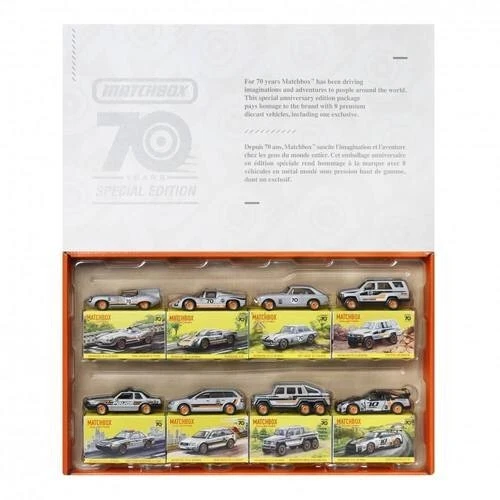 PreSale NEW Mattel International Matchbox 70th Anniversary Collector Set 8 units Description Brand: Mattel Type:mini car Please note, this item is a pre-sale listing. The release date is October 7, 2023. We will ship after the release date. This item is expected to shipped around October 12, 2023. Shipping We only Please pay within 5 days. We always send the item with a tracking number. So please place an order without any concern on delivery. You can always track the delivery status. Shipping is only available to the address registered in eBay. If you want us to send another address, please change your address on eBay and then place an order. Shipping is available from Monday to Friday. Weekends are not available because freight companies are closed. International Buyers - Please Note: Import duties, taxes, and charges are not included in the item price or shipping cost. These charges are the buyer's responsibility. Please check with your country's customs office to determine what these additional costs will be prior to bidding or buying. 100% Guaranteed. my goal is to make your experience with me as stressfree as possible.Items that are faulty beyond the description given on our auction site,please contact me. 100%customer satisfaction gauaranteed. Hawever,custums who abuse eBay's feedback system and leave a complaint before contacting me are not eligidle for a refund. Important notice We guarantee all the displayed items are authentic. and there are no pirated or illegally copied items. Please feel reassured. If you have made two or more successful bids,we combine those items. We package and seal those successfully bid items properly when dispatching. Note: Inport duties, taxes and charges are not included in the item price or postage charges are the buyer's responsibility. Please check with your country's customs office to determind what there additonal costs will be,prior to bidding / buying.