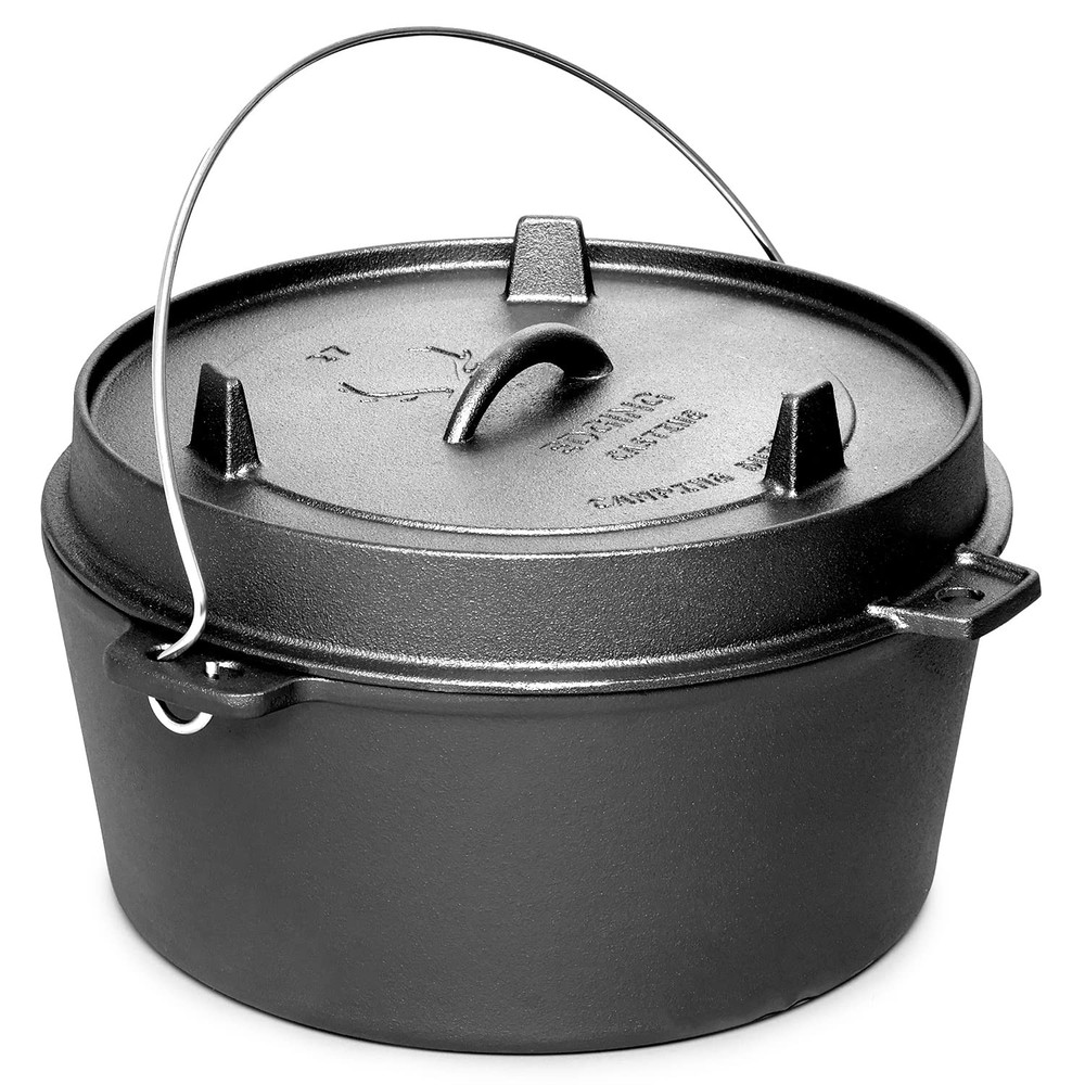 The cast iron material makes the pot heat up quickly and evenly, with a tight-fitting cover that keeps in all the flavor. The handle can be used to move the Oven from place to place, and also allows it to be hung over a campfire. After you're finished cooking, the Oven itself will remain heated as a result of the cast iron. Suitable for 5-6 People: This 6qt Dutch oven is perfect for family meals or small gatherings, offering ample capacity for hearty dishes Thick Cast Iron for Superior Heat Retention: The heavy-duty cast iron construction ensures even heat distribution, making it perfect for slow cooking, braising, and stewing Dual-Purpose Lid: The lid can hold hot coals for top heat or flip over to serve as a skillet, adding versatility to your cooking options Compatible with Various Heat Sources: Use it on stovetops, in ovens, over hot coals, or elevate it with a tripod for open-flame cooking Pre-Seasoned and Ready to Use: The pot comes pre-treated, but applying oil after receiving it enhances its non-stick surface and longevity