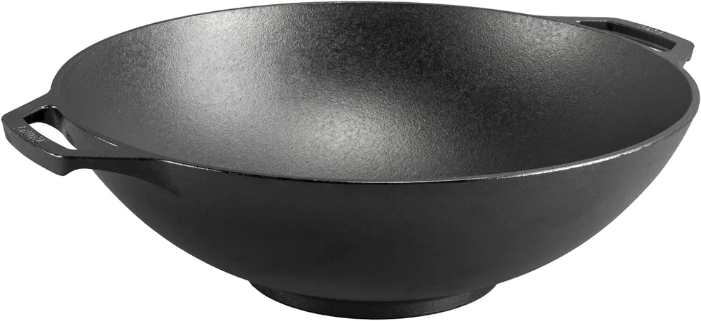 YOUR NEW GO-TO WOK: The Lodge Cast Iron WOK is perfect for cooking and serving an authentic meal with the same pan. The Wok offers a generous cooking surface in a sloped design that makes short work of any dish. The dual handle design makes it easy to maneuver around your kitchen and its flat base provides excellent heat distribution and retention for consistent, even cooking. SEASONED COOKWARE: Seasoning is simply oil baked into the iron, giving it a natural, easy-release finish and helps prevent your pan from rusting. Lodge pre-seasons all cast iron cookware with 100% natural vegetable oil: no synthetic coatings or chemicals. The more you use Lodge the better the seasoning will get! RUST? DON’T PANIC! IT’S NOT BROKEN: When your pan arrives you may notice a spot that looks like rust. It is simply oil that has not fully carbonized. With regular use and care the spot will disappear. If you do notice rust simply scour the affected area with steel wool, wash with warm water, dry, and rub with vegetable oil. HEAT RETENTION: The cast iron vessel has superior heat distribution and retention, evenly heating throughout both the bottom and sidewalls. Our heat retention also reduces the amount of energy needed for cooking. FAMILY-OWNED. Lodge is more than just a business; it is a family. The Lodge family founded the company in 1896, and they still own it today. From environmental responsibility to community development, their heads and hearts are rooted in America. Products made with non-toxic, PFOA & PTFE free material. The generous, bowl-shaped cooking surface and unbeatable heat retention of the Lodge Cast Iron 14 Inch Wok make it the perfect tool for everything from classic stir-fries and ramen to fajitas and scrambled eggs. Designed with deep sidewalls to keep everything contained as you cook, the wok can also handle frying and steaming. The flat base is ideal for all cooking surfaces, and the sturdy dual handles help you maneuver around the kitchen with ease. Seasoned and ready to use.