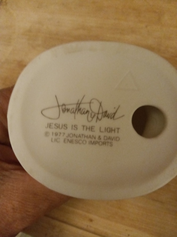 This Precious Moments figurine titled "Jesus is the Light" by Jonathan and David Original 21. E-1373/G is a beautiful piece that will bring joy to any room. Made of porcelain with a multicolor design, this small figurine stands at 5 inches tall and is 2 inches wide. It features hand-painted details and a matt finish, making it a perfect addition to any decorative collection. This figurine is part of the Precious Moments collection and is an original piece from 1977. It is suitable for all occasions and can be cleaned with warm water. The item comes in its original box and is made in Taiwan using batch production techniques. This piece is a must-have for anyone who wants to add a touch of religious-themed art to their collection.