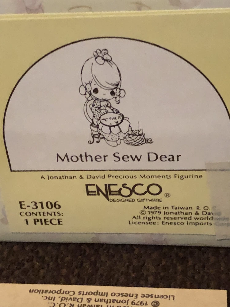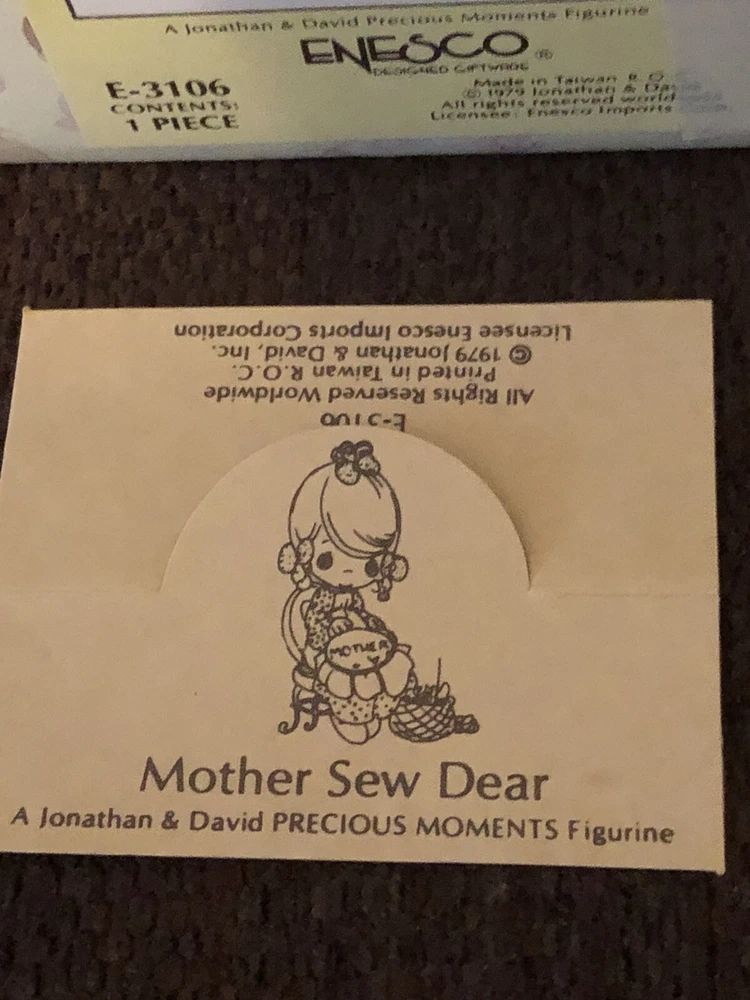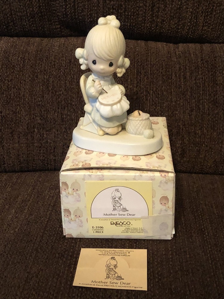 Precious Moments Figurine Mother Sew Dear / E-3106 / 1979 Jonathan & David Clean piece with no chips or cracks Original box