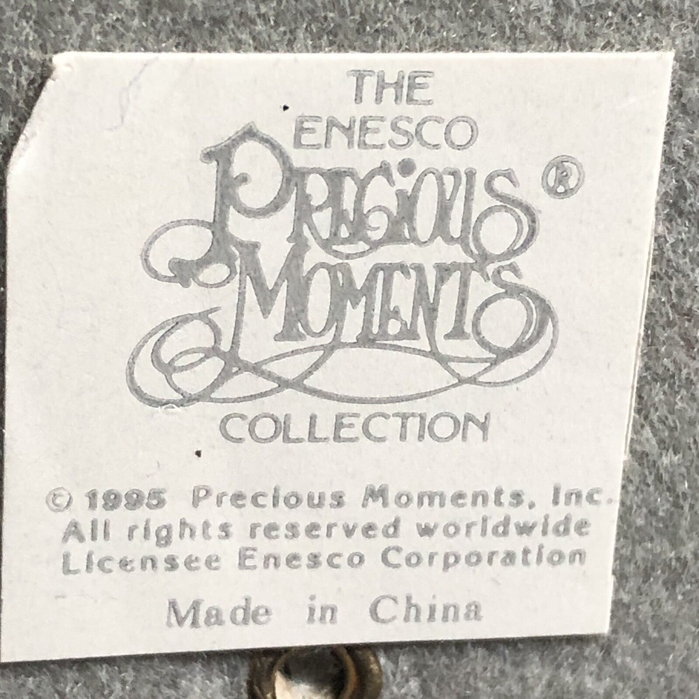 The Precious Moments Porcelain 8x10 Picture Frame from 1995 by Enesco features a delicate rose pattern on a classic white rectangular design. Made of high-quality porcelain, this photo frame can hold one 8x10 inch photo and measures 12 inches in height and 9 inches in width. Perfect for vintage collectors or those who appreciate timeless elegance in their home decor, this item captures the essence of the 1990s with its nostalgic design and intricate details.
