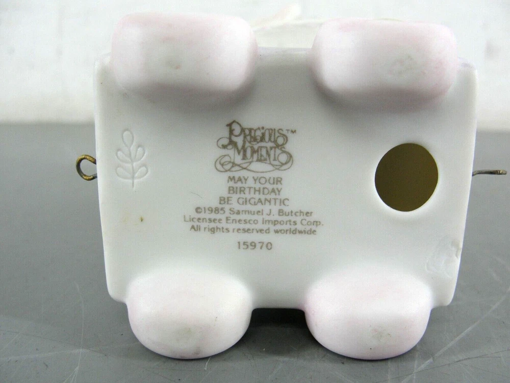 PRECIOUS MOMENTS BIRTHDAY TRAIN SET ELEPHANT #4 PIECE ONLY 1985 SAMUEL B VINTAGE Up for your consideration is this Adorable Vintage Precious Moments train set Elephant #4 piece ONLY. This cute porcelain Elephant piece attaches to the Precious Moments Birthday train set with a small wire hook on front and back and was made for a child's forth birthday. The Elephant is standing on a small train car and has a yellow #4 on it's side. The bottom of the train reads "May Your Birthday Be Gigantic". This is an original vintage piece from 1985 designed and signed by Samuel J Butcher. Get this piece today for your Precious Moments Birthday train set collection! Please be sure to see the other items we have listed. FEATURES: Vintage 1985 Precious Moments Birthday Train Set Elephant #4 PIECE ONLY - Little Lamb on train car - Reads "May Your Birthday Be Gigantic" on the bottom - Designed and signed by Samuel J. Butcher - small wire hook on each side for attaching to the rest of the train set ADD. INFO: N/A INCLUDED: The actual Precious Moments Train set Elephant #4 train piece only as pictured. NOT-INCLUDED: No original box, packaging, or paperwork. No batteries, bulbs, or any props used for size reference. BRAND: Precious Moments LABEL: #4 - May Your Birthday Be Gigantic DIMENSIONS: It measures just under 2" wide x 3" long (front to back including hooks) x just under 4" tall. COLOR: Light blue, pink, yellow, and white TYPE: Collectibles, figurines, Precious Moments, Elephant #4 MODEL #: 15970 COPYRIGHT DATE: 1985 CIRCA: Likely around the 1980's give or take 5 years. COUNTRY: Unknown MATERIAL: Porcelain CONDITION: This vintage Precious Moments Elephant #4 piece only comes to you in overall excellent condition. There are no chip or cracks to the porcelain. AUTHENTICITY and your SATISFACTION are UNCONDITIONALLY 100% GUARANTEED!!! Once you get it - if you are not thrilled just let us know - we gladly accept returns. Check our feedback and buy with complete confidence we have been selling on eBay everyday since 2001. SHIPPING DETAILS: The buyer pays for securely packed EXPEDITED shipping. It will include tracking and insurance. For premium services delivery to your address will usually take between 3 to 5 days. I will always combine shipping to save you money whenever possible, just email us to let us know. Please be sure to click on the shipping tab to compare rates and see all of the options available for shipping, some options cost less than others. SHIPPING CONDITIONS: *** Please Take Note!!! If paying via Pay-Pal we can ONLY ship to the address that is included with your Pay-Pal payment . If you need it sent to a different address please change that prior to making payment. LOC: C 31 F You really like the thing, but not so much the price... I find cool stuff, do some research and list it for what I think it's worth. Sounds pretty simple but sometimes not. So if this is something you really like but its a bit more than you had hoped to pay, then be sure to watch this because I can't send it to the bank, and if it ends without a buyer chances are good that I will drop the price and re-list it until it does sell! Two things for sure - it will get sold sooner rather than later, and that's better for both of us. International Buyers We will ship to most, but not all locations around the world. We use Priority Mail, and it will include full insurance and delivery confirmation. Unfortunately we do not ship using first class international mail because there is no insurance available. "Import Duties", "Tariffs" and "Taxes" are NOT included in the item price or shipping charges. These charges are imposed and collected by your country and are your responsibility. Please check with your country's customs office to determine what these additional costs (if any) will be prior to bidding/buying. These charges are normally collected by your customs office when you pick the item up or upon delivery ? please do not confuse them with shipping charges, they are not. Buyers using the Ebay Global Shipping Program will be shown these cost prior to purchase. We can NOT reduce the value on the "Customs Forms". The sales prices is automatically entered and also sets the maximum amount that the item can be insured for. We can not mark items purchased by you as "gifts". Some countries restrict or prohibit the import of certain items such as currency - jewelry or animal parts such as teeth, claws, horns or shells from many creature on the endangered specie list. The lists varies widely and changes often. It is your responsibility to check and make sure your country allows this specific item to be imported by you. We take a great deal of pride in our feedback rating and never want you surprised by anything you get from us. PLEASE If there is ever an issue, all we ask is that you give us an opportunity to address it BEFORE leaving feedback. Overall General Condition New Excellent Very Good Good Fair Poor Appearance Brand new and never used. No visible flaws in appearance. First quality, suitable for a gift. Like new condition. Upon close inspection some very minor signs of use or wear, but no serious flaws. Obviously used but kept in great conditional and well cared for. Expected normal signs of wear but no abuse. Clearly used allot, enough to cause significant signs of wear. See item description for more details on further future use. Used extensively, many cosmetic flaws and signs of wear. Questionable functionality Sold "AS IS" Used extensively with abundant and major cosmetic flaws. Likely non- functional. Sold "AS IS" for decorative use only. HUGE eBay STORE; If you liked this item, then you should take a look at some of the other items I have listed, some listings are "Buy-It-Now" and may even have a "best offer" and occasionally go on sale. It's a "virtual treasure trove" crammed full of 100's & 100's of old, new, odd & unusual items!! New items are added weekly. So take a minute and visit our store to see thumbnail pictur