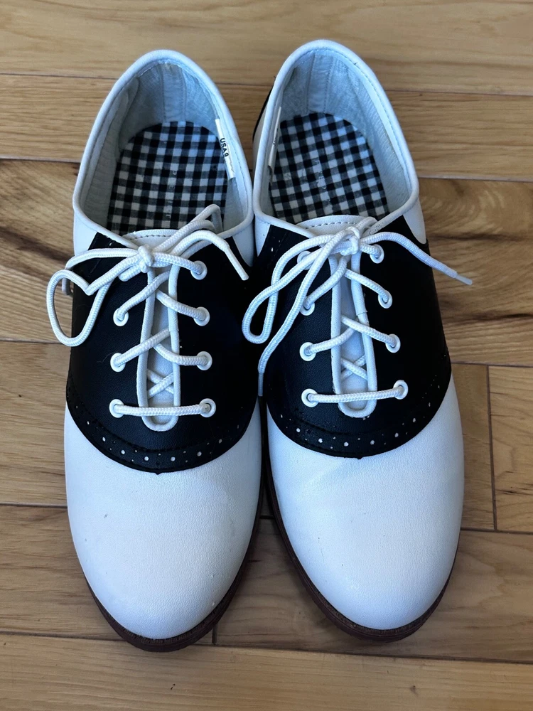 Predictions White & Black Saddle Oxford Retro 50s Style Lace Up Size 9