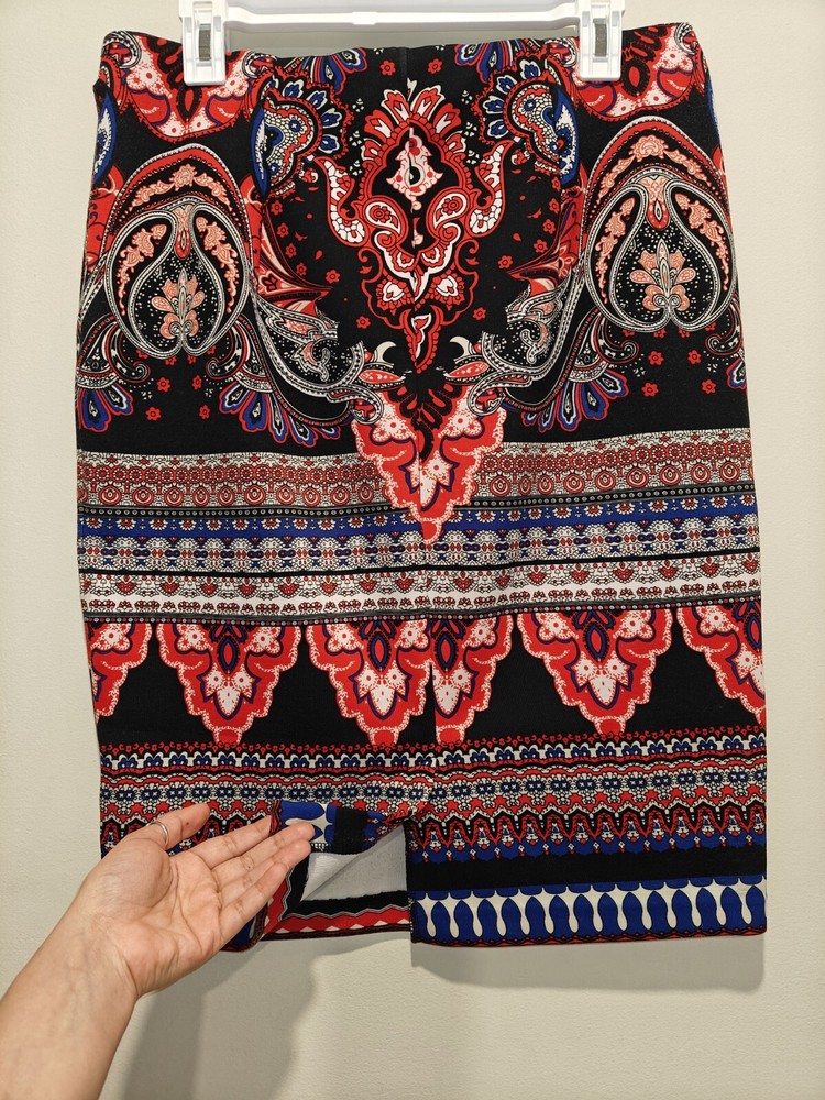 Premise Studio Size Medium Women's Paisley Print Elastic Waist Straight Skirt