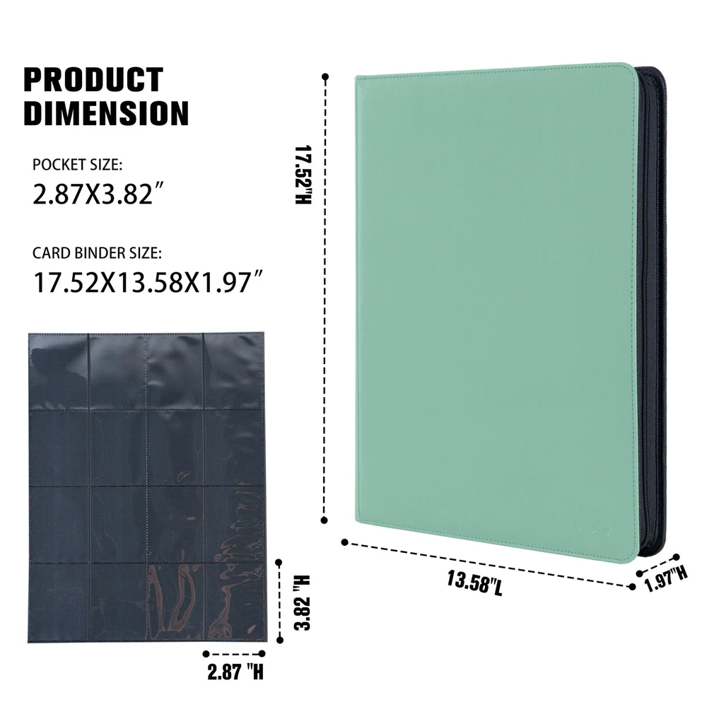 Why choose our card collector's album? 1.The 4x4 card binder has a large number of pockets, capable of holding 1000+ trading cards. 2.The portable card binders keeps all cards organized in one place, instead of scattered everywhere. 3.The card holder binder is compatible with standard-sized trading cards, game cards, sports cards, and more. 4.You can take your collection with you anywhere. Features How many cards can it hold? Holds up to 1000+ trading cards 16 pocket per page 32 Double Sided Pages Fit multiple standard size cards Specification Pocket size:2.87X3.82" Card binder size:17.52X13.58X1.97" Weight: 4.63lb What is included? 1x 16 Pockets Card Binder 【Large Capacity】This Trading Card Binder with 32 Double Sided Pages,16 pocket per page,holds up to 1024 cards.Provides plenty of space to keep all your cards organized,not disorganized. 【Wide Application】The 1000+ card binder is compatible with multiple standard size cards,compatible with TCG cards /baseball cards /basketball cards/football cards/sports cards and more.(NOT INCLUDED trading card) 【Side Loading】Easily insert cards from the side and prevent them from falling out. The padded ultra-hard front and back covers are made of non-slip, waterproof matter to keep your collection safe and intact. 【Multiple Protections】The closed zipper design ensures that the cards will not fall outside,and the card sleeves are made of high-quality-matter to protect your cards from fading and staining. 【AFTER-SALES SERVICE】We hope that customers who receive card binder will absolutely like them. If for some reason they don’t,Please as soon as possible,Your satisfaction is our priority!𝐁𝐞𝐟𝐨𝐫𝐞 𝐩𝐮𝐫𝐜𝐡𝐚𝐬𝐢𝐧𝐠, 𝐩𝐥𝐞𝐚𝐬𝐞 𝐬𝐞𝐞 𝐭𝐡𝐞 𝐥𝐚𝐫𝐠𝐞 𝐜𝐚𝐫𝐝 𝐛𝐢𝐧𝐝𝐞𝐫 𝐬𝐢𝐳𝐞:𝟏𝟕.𝟓𝟐𝐗𝟏𝟑.𝟓𝟖𝐗𝟏.𝟗𝟕 𝐈𝐍!
