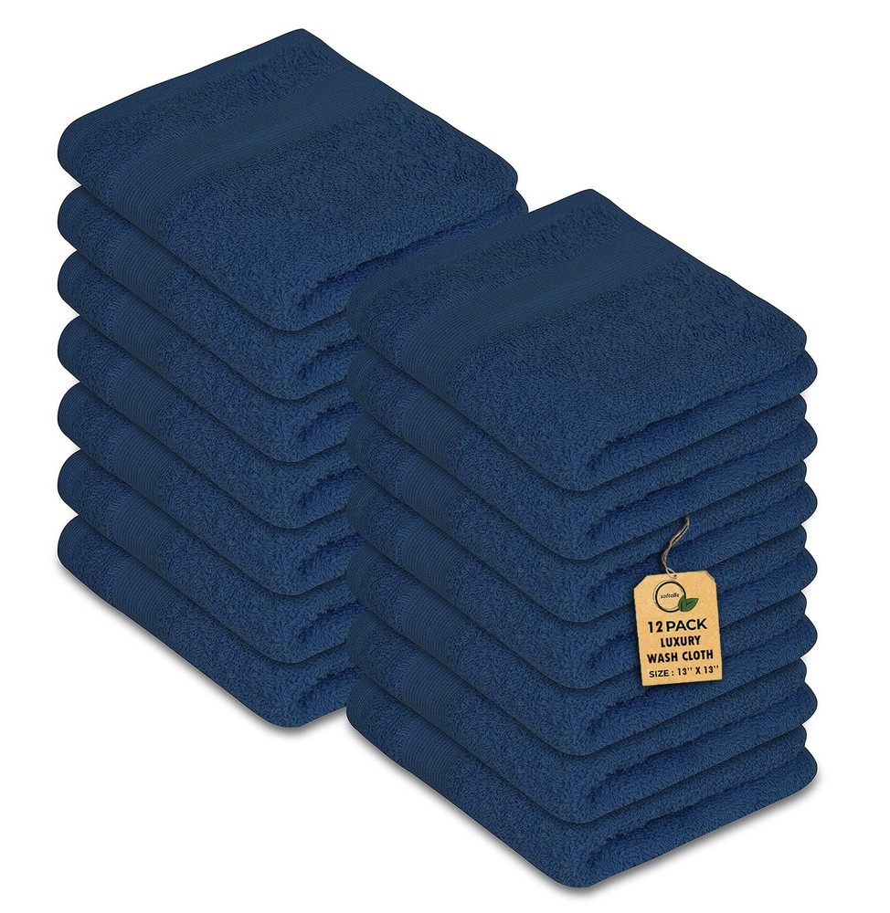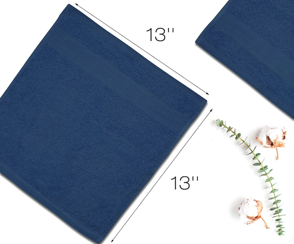 Elevate your everyday routine with our Premium Wash Cloths Pack of 12, crafted from 100% combed ring-spun cotton for ultimate softness, durability, and absorbency. Measuring 13" x 13" inches, these luxurious face towels are gentle on sensitive skin, highly absorbent, and perfect for daily use at home, the gym, or while traveling. Designed to withstand frequent washing, they retain their plush feel. Add a touch of luxury to your bath essentials with these versatile washcloths! 100% NATURAL COTTON RING SPUN – To provide luxury experience for softness and smoothness, these white washcloths are made from 100% natural cotton. HOTEL QUALITY / DOUBLE STITCHED – Hotel quality wash cloth and double stitched sides which can last longer. High quality, luxurious & durable washcloths that last longer than average wash clothes for body and face and retain strength for a long time. MULTIPURPOSE – These face towel can be best described as multipurpose. It can be used as gym towel, baby towel, face towel, kitchen hand towel, hand towels for bathroom, wash cloths for your face, wash cloths for your body, dish cloths, bar towels, car cleaning towel, gym towels, salon towel and home cleaning towel. PERFECT SIZE: Pack of 12 WASHCLOTHS- There are 12 pieces of high quality wash clothes in the pack which measure 13x13 inches each. HIGHLY ABSORBENT – The towel sets for bathroom have the capacity of holding significant amounts of Liquid. The face white towels are non-scratchy and the lint of these washcloths is controlled during the manufacturing process. To have the best experience wash these bath washcloths before use which make the washcloths set more fluff and soft.