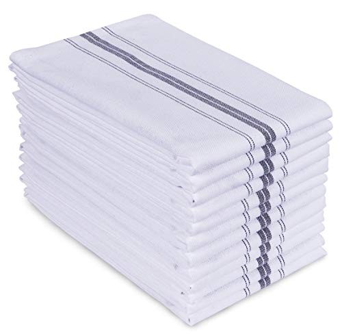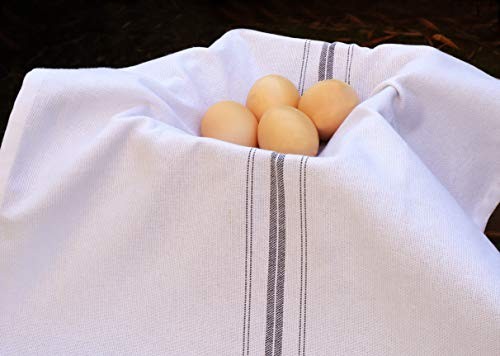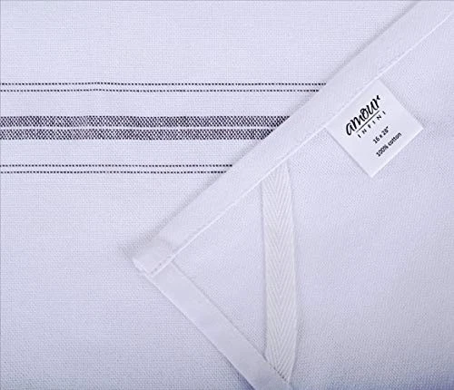 Premium 12-Pack White Cotton Kitchen Towels with Farmhouse Charcoal Stripes