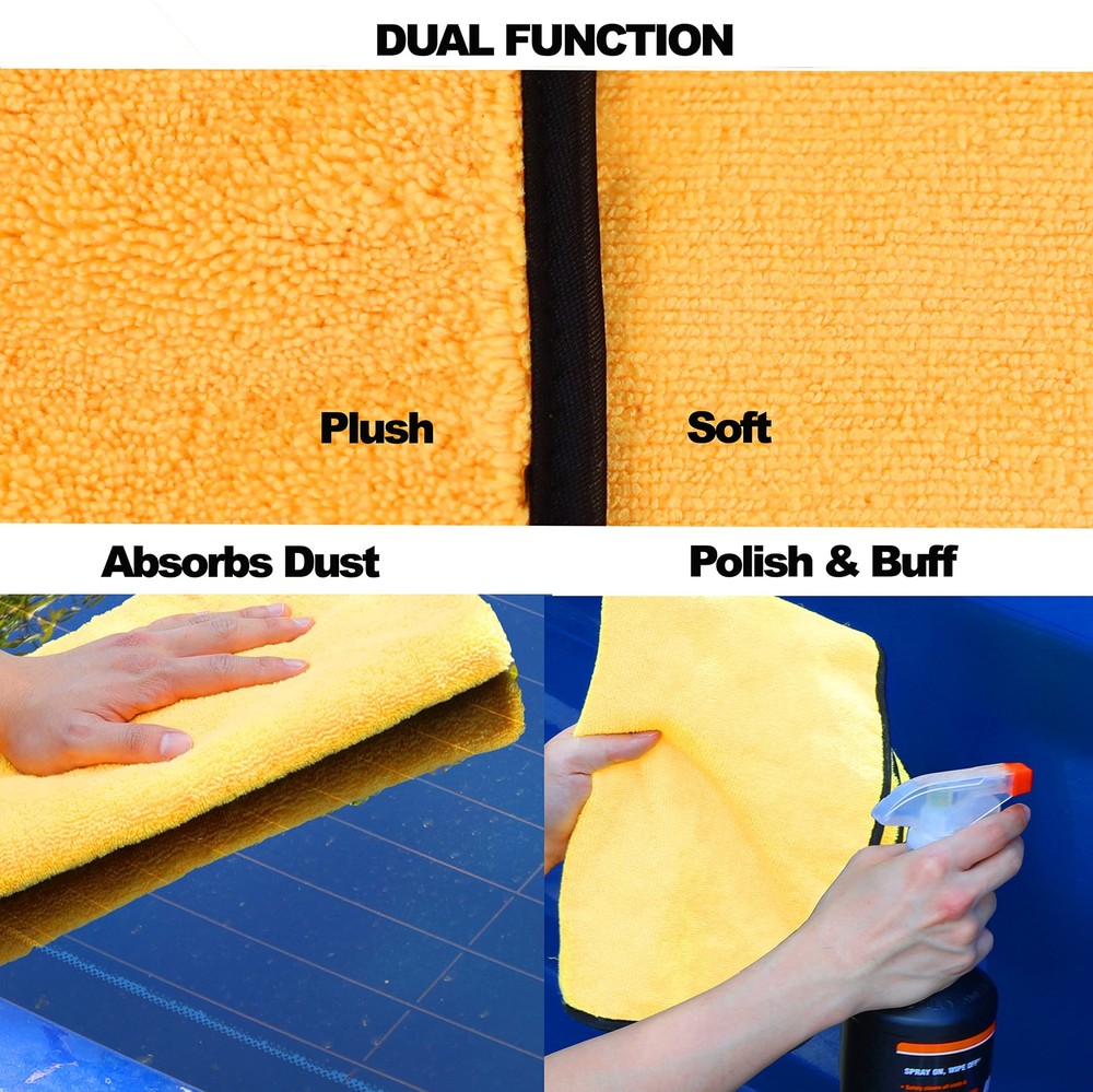 These microfiber towels are amazing! Super soft and thick, they absorb water like a champ without scratching my car’s paint. The dual-sided design is perfect—plush for soaking up spills and smooth for polishing. I use them for everything from my car to my TV, and they work flawlessly every time. Great value for a 12-pack!