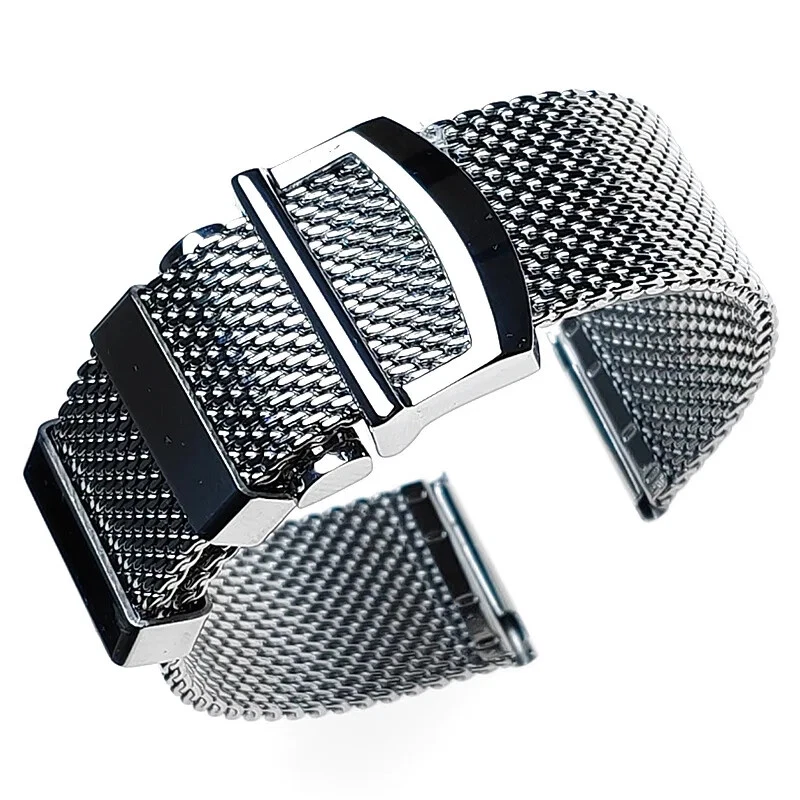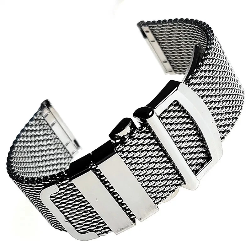 Material: Stainless steel Color: Silver (original color of steel) Length: 14.5cm-18.5cm. Compatible for 17-21cm wrist. If you have small wrists, this watch strap may be too big for you. Weight: about 80g (depends on size) The watch straps come with quick release spring bars Please Note: The strap and clasp are original designed, feature no logos or trademarks.