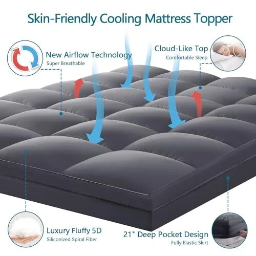 Return Policy Fast Delivery Trusted seller Premium 2100 Series Mattress Topper Queen Extra Thick Cooling Mattress Pad Cover, 400TC Plush Pillow Top for Back Pain, Soft Breathable 5D Snow Down Alternative Fill with 8-21" Deep Product Description 1.?【PERFECT BALANCE OF SUPPORT & COMFORT】Adding a premium layer of cushioning 5D Spiral Fiber Fill, our mattress topper achieves a smart balance of support and softness. An ergonomically supportive and cozy solution is produced for your sleep without the odor of feather. Real Box Design brings you a puffy comfort and secure feeling, not only revives your old mattress, also extends the life of your expensive mattress. 2.?【COOLING &BREATHABLE】Adopted CDN Cooling Technology, the breathable fabric of this mattress topper, allows a more effective air flow to diminish overheating so enable you to enjoy a refreshing and restful relaxation experience. Stay perfectly cool and comfortably warm with optimal temperature control. Avoid waking up at night being hot and sweaty. 3.?【ADVANCED CONSTRUCTION&NEVER SHIFTING】Constructed with classical quilted square and stream pattern style to prevent the fill from shifting. So the mattress topper will be kept in place, no matter how you turn over on your bed at night. 4.?【LUXURIOUS SLEEP&ELASTIC DEEP POCKET】Quality stitching ensure a secure fit for mattress depths from 8" to 21". It can be used to add a layer of protection, comfort, and softness to enhance the feel of your mattress. Allowing you to experience luxurious sleep every night. 5.?【MACHINE WASHABLE& EASY CARE】It is machine washable and you can tumble dry it on low, do not bleach. Easy maintenance saves your energy and electric bills. This mattress topper is packaged in a Vacuum Bag. Please wash and dry it before use so it would return to normal thickness. Shipping Returns Payment Shipping Shipping is FREE to all addresses other than APO/PO boxes in the lower 48 states. All our stock ships from US-based warehouses. Shipped via USPS or UPS (depending on location and package weight) Unless stated otherwise, all orders will ship within 24-72 hours of your payment being processed. Check our feedback to see the great reviews of FAST shipping we offer. Returns Seller does not accept returns Payment We currently accept payment via eBay managed payments only. Once payment is cleared, we will dispatch your shipment within 1-3 business days. Please refer to the "Shipping" tab for more information regarding shipping speed to your destination.