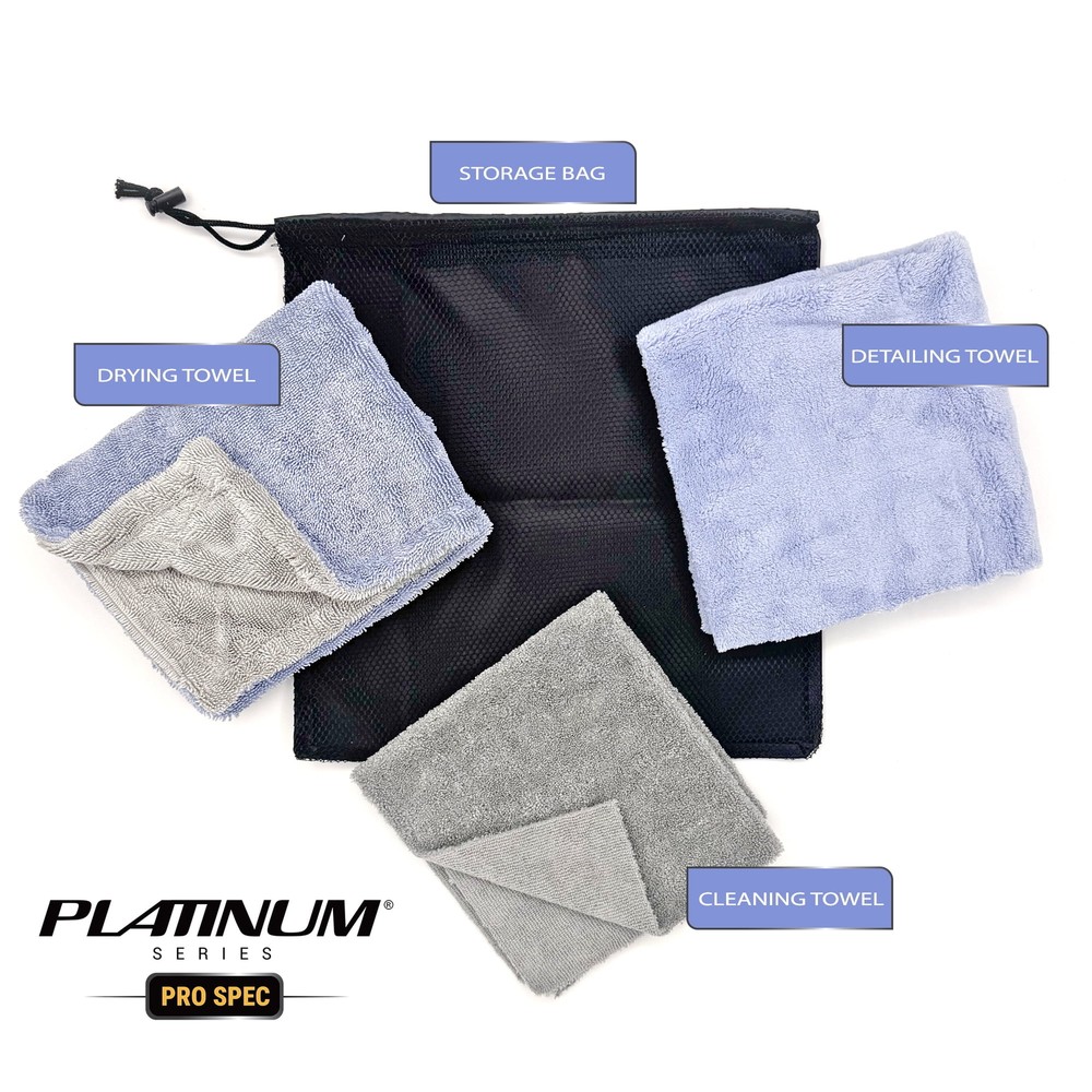 Clean, & Detail After Car Wash Pack is ideal for final touches after going through an automated car wash, made with a premium 70/30 microfiber loop for unmatched softness and superior absorbency, this pack offers a streak-free drying towel and two towels for final shine and cleaning, and best of all a convenient storage bag is include to keep the towels neat and organized, ready for the next use, without taking up valuable cargo space. Premium Construction: 70/30 Microfiber Material: Ultra-soft, high-density fibers designed to be gentle on surfaces while delivering superior cleaning, drying and detailing performance. Versatile Use: 3 Towels to keep in your vehicle for quick and easy touch ups after going through the car wash to clean, dry and detail on-the-go, or simply soak up any unwanted spills or accidents along the way. Complete Set: Each pack contains (1) Twisted Terry Loop 1000 GSM Drying towel, 3 sq. ft, (1) Multipurpose 300 GSM Cleaning Towel, 15.5 in x 15.5 in, and (1) Coral Fleece Buff & Polish 500 GSM Detail Towel, 16 in x 16 in. Durable & Reusable: Machine-washable design ensures longevity, maintaining quality through multiple uses and washes. Bonus Accessory: Mesh storage bag to keep all items clean and organized ready for use.