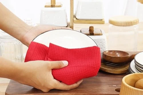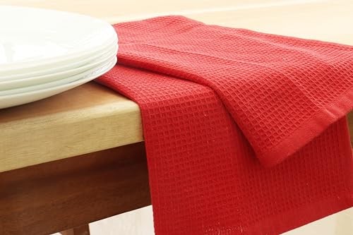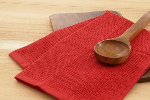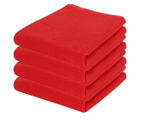 Premium 4-Pack Red Waffle Weave Kitchen Towels 100% Cotton 15x25 Inches