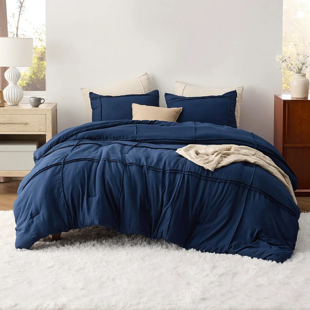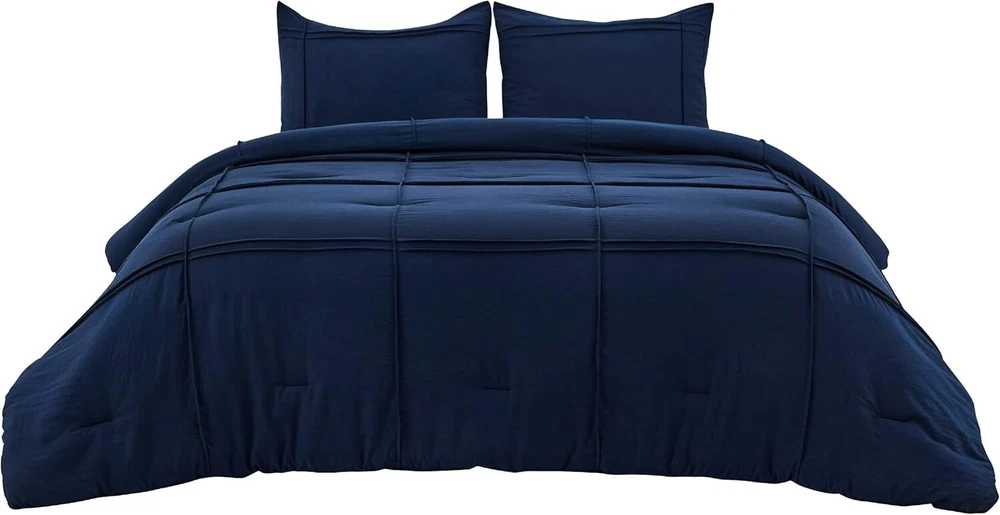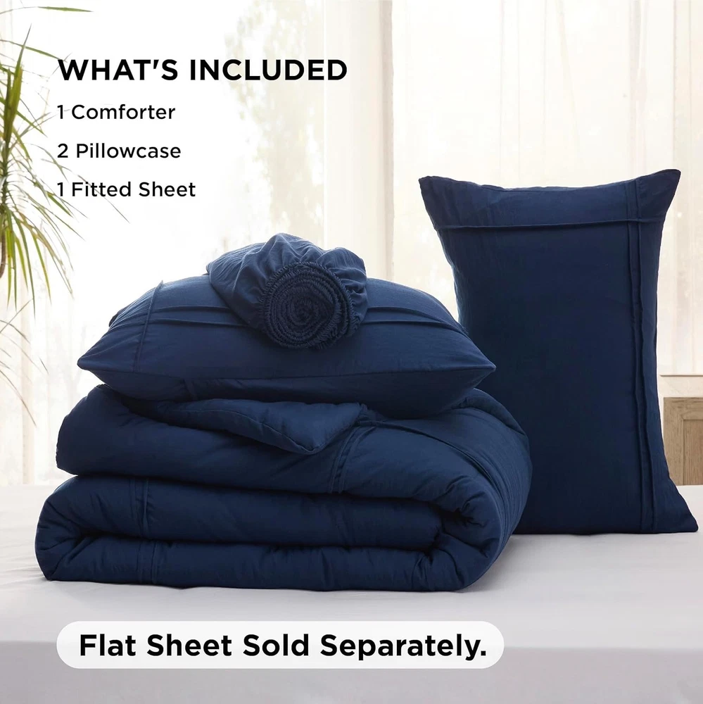 Product Care Instructions: Machine Wash, Do Not Bleach Pattern: Solid Personalize: No Insulation: All Seasons Set Includes: Comforter Set, Comforter, Pillowcase, Fitted Sheet GSM (Grams per Square Meter): 150 to 300 Fabric Type: 100% Polyester Type: Comforter Theme: Modern Season: All Number Of Pieces: 4 Style: Modern Closure Type: No Closure Department: Unisex Baby & Toddler, Adults, Teens, Kids UPC: Does not apply Material: Polyester, Microfiber Number of Items in Set: 4 Fill Material: Microfiber Thread Count: 200 or Less Features: Breathable, Down Alternative, Hypoallergenic, Lightweight, Stain Resistant Size: King gtin13: Does not apply Seasons: All, Winter, Summer, Spring Material Type: Polyester Style Name: Modern Room: Bedroom Color: Navy Brand: Unbranded Care Instructions: Machine Wash, Do Not Bleach