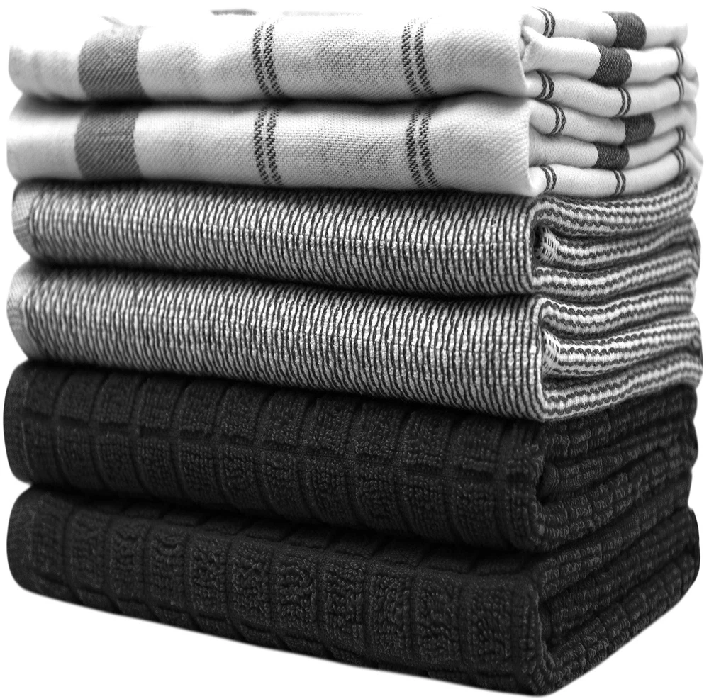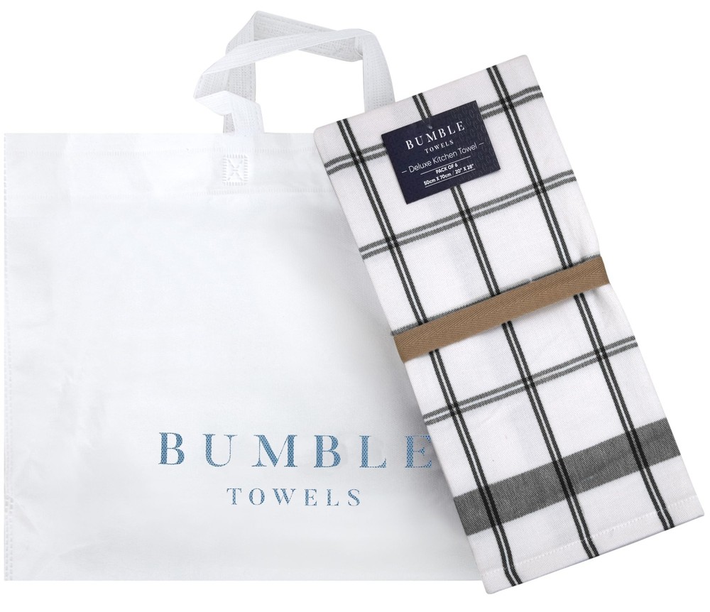 Bumble Kitchen Towels are Pretty for Your Home and Practical for Many Uses! Variety is the spice of life and bigger is better. Keeping these in mind, Bumble designed a luxe Kitchen Towel Set that looks fancy but is actually super functional. This set includes 6 XL dish cloths sized 20" x 28”. Made of 100% ring-spun combed cotton, the rags are ultra-soft, long-lasting, and machine washable. Choose from 2 color assortments – including Grey and Aqua Blue. Different Textures for Different Uses This cute kitchen towel pack is thirsty to get wiping, drying or covering. Whether you use them as dish drying rags, to wipe up messes, cover bread and baked goods, or to just hang pretty on a rack, they offer multiple uses around your home. Each pack includes 2 solid dyed towels, 2 flat woven yarn dyed towels, and 2 reversible terry yarn dyed towels. As different textures can be used for different purposes, they are certainly an eco- and wallet-friendly alternative to using paper towels. 100% Satisfaction Guarantee Bumble wants our customers to buy with complete confidence. We’re so sure you’re going to adore your new 6 Pack of Kitchen Towels that we’re giving you our exclusive guarantee. If you don't find our towels to provide the best quality at the best price, you can return them with no questions asked. Get Drying and Add Bumble Kitchen Towels into Your Shopping Cart Now - Before Our Inventory is All Cleaned Out! SOFT & ABSORBENT: Made from 100% ring spun cotton to help keep your home clean and sanitary. Our towels are machine washable and reusable. Effective for soaking up more than paper towels ENVIRONMENT FRIENDLY: Absorbent hand towels for a healthier, cleaner environment for your home. They maintain their look and feel through multiple wash cycles 6-PACK: Contains three different textures of towels, including a flat towel and terry towel. Great for drying dishes, cleaning kitchen countertops, wiping up spills, and more HANGING LOOP & BONUS TOTE BAG INCLUDED: Bumble Kitchen towels come with an elegant tote bag, making this a great gift for loved ones CARE FOR YOUR TOWELS: Machine wash warm and tumble dry low. We recommend to wash before the first use to remove any excess lint leftover from the manufacturing process. Always wash your towels separately to avoid transfer of lint onto your garments.
