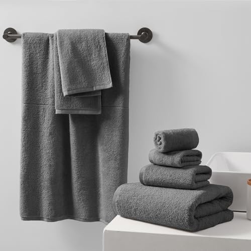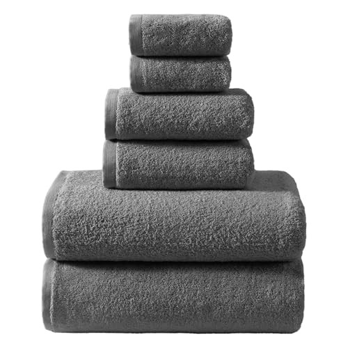 Premium 6-Piece Cotton Towel Set in Carbon Grey Includes 2 Bath Towels