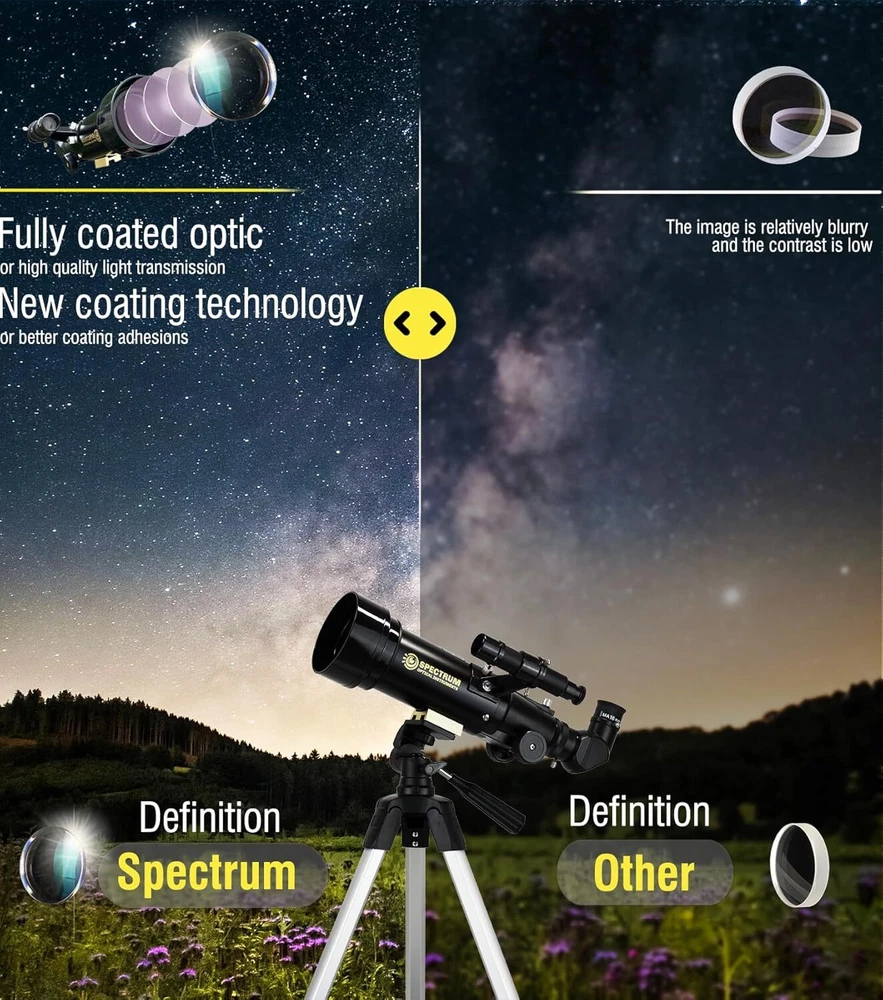 Telescope for Kids 8-12 - Premium Refractor Telescope 70mm Aperture with Carry Bag and Phone Holder Item Description Compact and Portable Design: The AstroLite 70AZ Refractor is a lightweight and compact telescope kit, designed for travelers who want to explore the night sky on the go. It comes with a carry bag, making it easy to transport and set up during camping trips, hiking, or other outdoor adventures. Optics and Accessories: This telescope features a 70mm aperture and a 400mm focal length, allowing for clear and detailed views of celestial objects like the Moon, Jupiter, and Mars. It includes two eyepieces (10mm and 20mm), a 3X Barlow lens for increased magnification up to 120X, and a smartphone adapter for astrophotography. Altazimuth Mount and Tripod: The telescope is mounted on an Altazimuth mount, which provides easy maneuverability for tracking celestial objects. It also comes with a stable and portable tripod, ensuring steady viewing experiences. Payment safe payment via eBay Shipping Fast and Free Shipping Return 30 Days Return