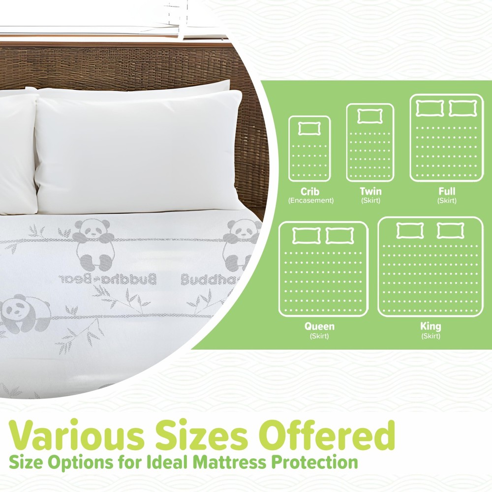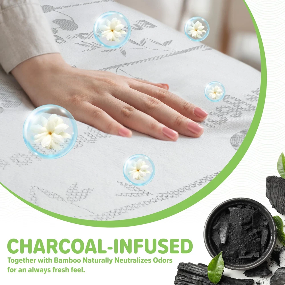 This mattress protector is made from 40% viscose from bamboo, which is a natural and renewable resource. Bamboo fiber has many benefits, such as being hypoallergenic, breathable, and moisture-wicking, which can help keep you cool and comfortable while you sleep. The mattress protector is also waterproof, which can help protect your mattress from spills, accidents, and other moisture-related issues. The protector is extra soft, which can help make your bed feel more comfortable and luxurious. The protector has an infused charcoal layer that helps to absorb odors and keep your bed smelling fresh. The protector has a 21-inch skirt that fits snugly around your mattress, ensuring that it stays in place and does not move around during the night. The protector is easy to care for and can be machine washed Cold and dried. It is also compatible with all types of mattresses, including memory foam, innerspring, and hybrid mattresses. Overall, this mattress protector is a great way to protect your mattress from spills, accidents, and other moisture-related issues, while also providing you with a comfortable and luxurious sleeping surface. ๐ผ Made of Premium Bamboo๐ . Have Naturaly Zen Sleep with this Soft Noiseless Material. That is Waterproof yes still allows airflow to keep a cool surface to the touch. ๐ผ Waterproof Protection : The protector features a waterproof barrier that prevents fluids, including sweat, urine, and spills, from reaching your mattress. This ensures that your mattress remains clean and fresh, even during accidents or incontinence. ๐ผ With Extra Deep Skirt that stretchs to fit beds up to 21". It is designed to accommodate any type of mattress, including memory foam, innerspring, and hybrid mattresses. ๐ผ Enfused Charcoal for Odor Control : The protector is infused with activated charcoal, which is a natural odor absorber. It helps to eliminate unwanted odors, including pet odors, smoke odors, and body odor, keeping your mattress fresh and smelling fresh. ๐ผ Machine Washable on Cold, and Tumble Air Dry. This Matress is ready for Family with Kids and Pets
