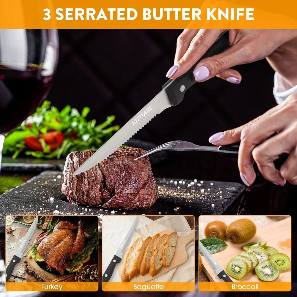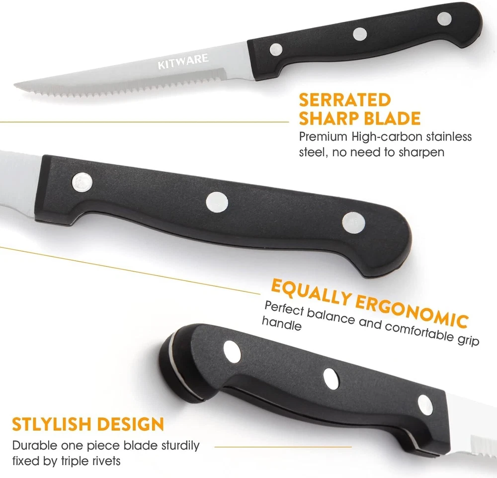Premium Black Handle Steak Knife Set with 4.5-Inch Sharp Blades - Perfect Gift