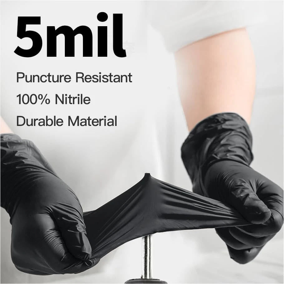 Premium Black Nitrile Exam Gloves - 5 Mil, Powder-Free, Food Safe