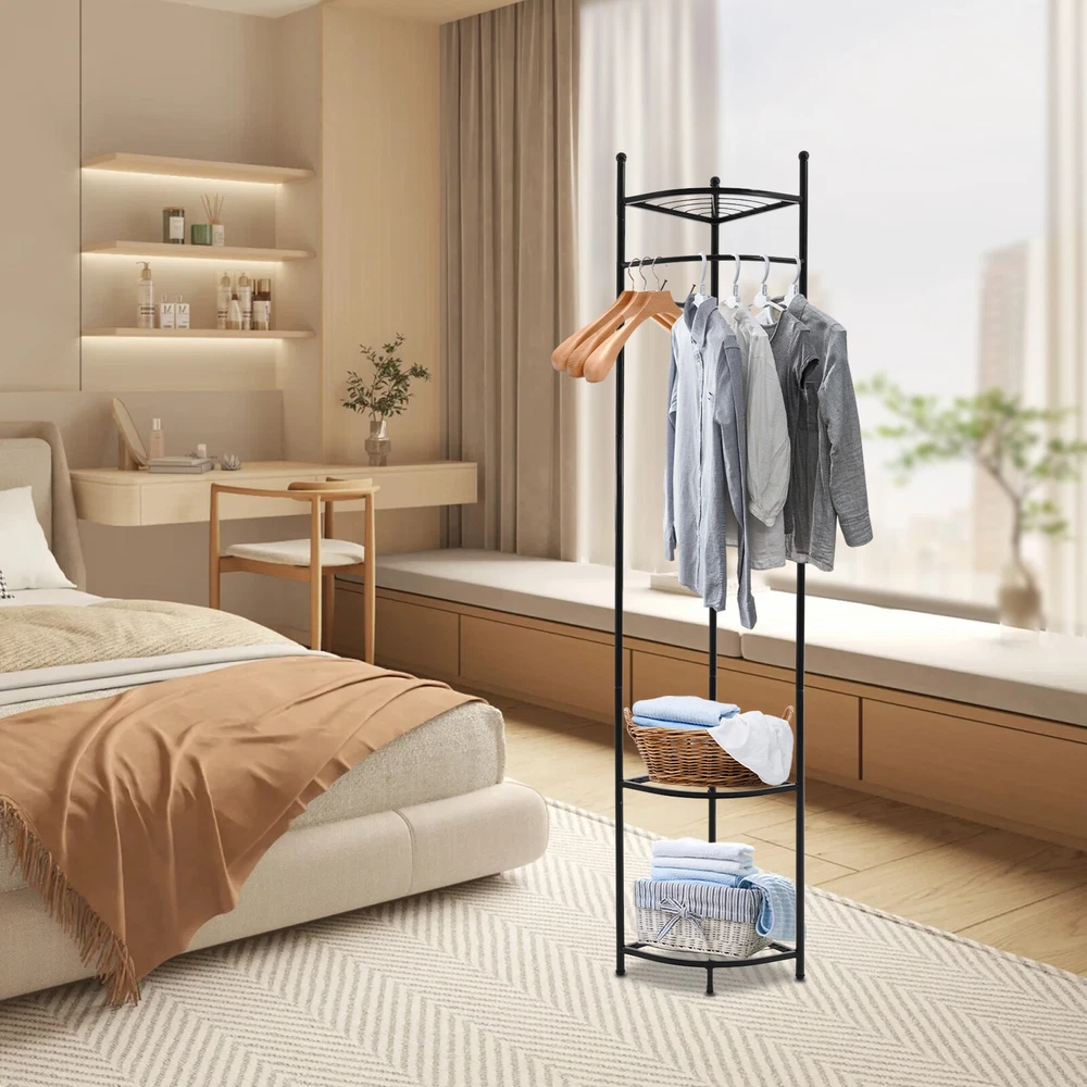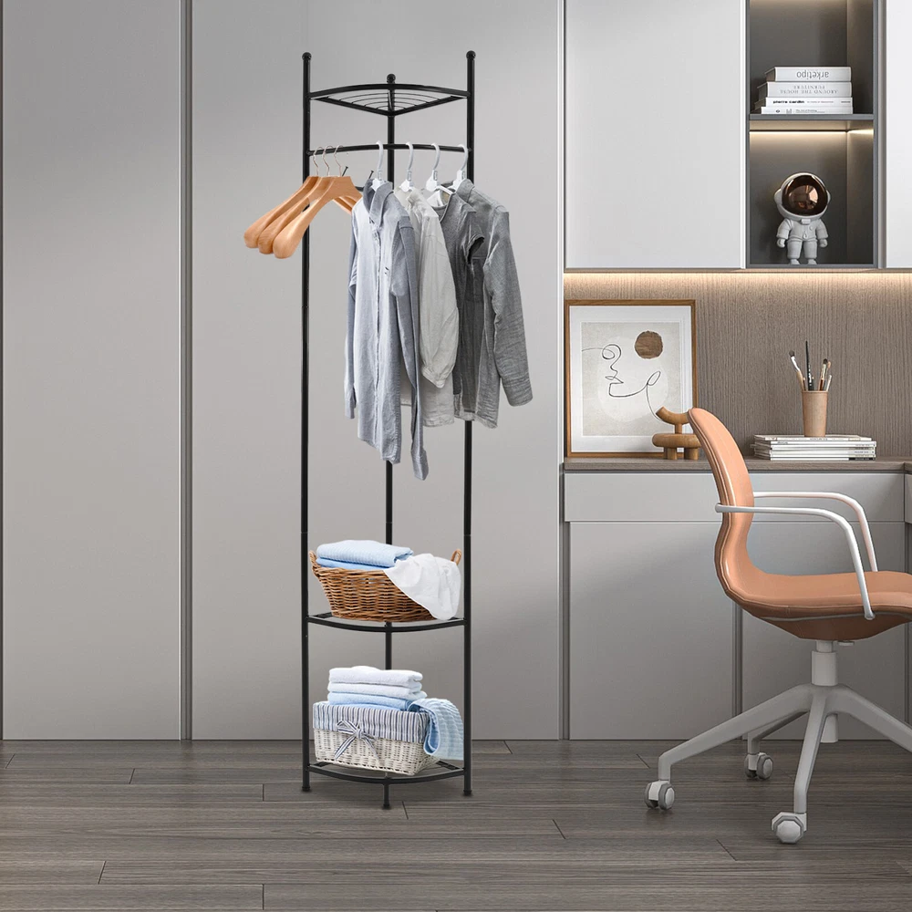 WELCOME Description Description Are you still struggling with the clutter of clothing organization? Our corner coat rack can solve this problem well. The combination of high-quality material and exquisite craftsmanship makes it sturdy and durable. With its generous appearance, it can easily blend into various places. It can not only be used to hang clothes but also to store items. Take this practical product home quickly! Key Features Build to Last: Made of carbon steel with a baking paint process, this product is impact-resistant, wear-resistant, and corrosion-resistant, ensuring your long-term use. Strong Load-bearing Capacity: High-quality material and sturdy structure make this product capable of bearing up to 22.05 lbs, allowing you to use it with confidence. Storage Assistant: The top fan-shaped shelf and two fan-shaped shelves at the bottom allow you to place shoes, storage boxes (all are not included), and other items. The hanging rod can be used to hang clothes. Four hooks can be used to hang clothes, bags, scarves (all are not included), etc. Space-saving: The fan-shaped structure can be tightly attached to the wall, allowing it to be placed in the corner without taking up too much space. Thoughtful Design: The reasonable hanging height (41.34 inches) allows you to hang long and short clothes. Vertical hooks can prevent hanging objects from falling off. Simple Installation : The simple structure and complete accessories allow you to quickly assemble this product and enjoy the pleasure of installation. Easy to Clean: It has a smooth surface and a simple structure, so you only need to wipe the dust with a towel (not included) regularly. Ideal Gift: This practical product can be used as an ideal housewarming, birthday, and holiday gift for parents, friends, and loved ones. Customer Service: We stand behind all our guests and look forward to assisting you with your purchase. It is our pleasure to answer your confusion and questions. The end of the story between us is definitely not "we sell and you buy". Details Protective Foot Pads: 4 protective foot pads can reduce bottom wear and prevent scratching the floor. Open Structure: It allows you to easily hang clothes and retrieve items. Application It is suitable for corridors, entrances, bedrooms, living rooms, offices, etc. It can be used to store clothes, shoes, bags, etc. Specification Color: Black Style: Modern Material: Carbon Steel Process: Baking Paint Number of Fan-shaped Shelves: 3 Number of Hooks: 4 Load-bearing Capacity: 10kg/22.05lbs Assembly Required: Yes Mounting Type: Free Standing Product Size: 39*172cm/15.35*67.71in Hanging Area Height: 105cm/41.34in Package Size: 62*32*32cm/24.41*12.6*12.6in Gross Weight: 3.5kg/7.72lbs Net Weight: 3kg/6.61lbs Package Included 1* Corner Coat Rack All Accessories for Assembly Notes Please pay attention to placing heavier items at the bottom as much as possible to ensure that many clothes are hung. Please note that this product does not include clothing, shoes, bags, etc. Please allow the slight color difference caused by the shooting light and 1-3 cm error due to manual measurement, and make sure you do not mind before ordering. Payment Delivery details Terms of sales About us Contact us Payment We accept ebay payment 。 Fees such as import duties, taxes are not included in the item price or shipping costs. These charges are the buyer's responsibility. Delivery details Shipping: 2-9 working days to: USA Terms of sales We maintain high standards of excellence and strive for hundred percent customer satisfaction. Feedback is very important to us. We hope that you contact us immediately before you give neutral or negative feedback, so that we can address your concerns. It is impossible to address issues if we do not know about them! About us Your satis faction is our ultimate goal. We work hard to earn your trust and future business. Our certified technicians have tested each item before shipping. The unit comes with 1 year limited warranty on all manufacturing defects. a) If you receive a defective item, you may return it or ask for a discount. Please contact us within 14 days after you receive the package. b) What you returned must be intact and in its original packaging as re? u. Customer is responsible for shipping costs of the returned item. c) We will cover the cost of shipping back t with the shipping rate indicated in the registration page. We will send you a new unit or refund the full payment you paid. Thank you. Contact us Business Hour Business Hour: Monday To Friday: 8:30 AM to 5:00 PM (Beijing China time) Due to time zones, our reply to your questions may not be immediately. But within above working time, we will reply your email within 24 hours. If it's non-workdays, please kindly be patient and wait till Monday. Please contact us with ebay message. Please feel free to contact us if you have any questions. Monday To Friday: 8:30 AM to 5:00 PM (Beijing China time) Due to time zones, our reply to your questions may not be immediately. But within above working time, we will reply your email within 24 hours. If it's non-workdays, please kindly be patient and wait till Monday. Please contact us with ebay message. Please feel free to contact us if you have any questions.