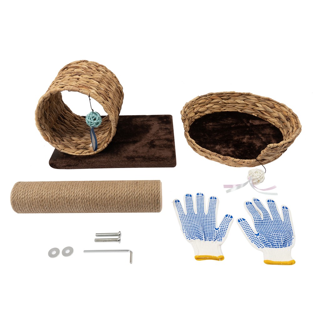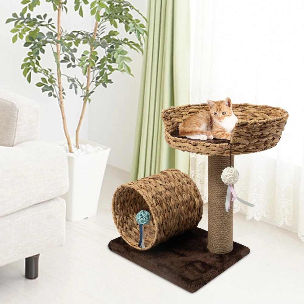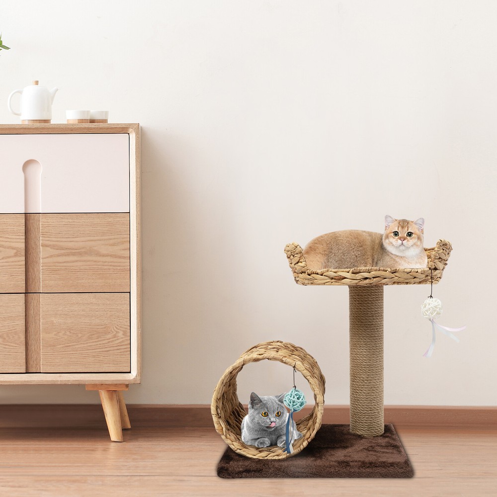 💖welcome to my store💖 Description Description The Hand-made Two-level Cat Tree with 2 Toy Balls Is Made of Particle Board, and Velvet Which Is Strong, Durable, Stable, Environmentally Friendly, and Easy to Maintain. the Double-decker Design Allows Cats to Move and Rest Freely on the Top and Bottom, so This Provides a Comfortable Environment for Your Cat. and with Its Beautiful Shape and Coordinated Color Scheme, It Can Fit Well into Your Furniture Decor. Key Features High Stability: It Is Made of Particleboard, Velvet and the Wide Base (15.7*12.2inch) Will Not Collapse No Matter How It Shakes, and Can Provide Stable Support for Cats and It Can Bear the Weight with up to 36.46lbs Good Material: the Particle Board, and Natural Sisal, This Cat Tree for Large Cats Is Safe and Healthy for Your Furry Friend to Use. A Win-win Solution: Climbing and Grinding Claws Are the Nature of Your Cat, but It Can Make a Mess in Your Home When It Does so. with This Cat Tree, Your Cat Can Freely Jump and Grind Its Claws, Unleash Its Nature, Become More Active and Healthy, and Keep Your Home Tidy. Versatility: It Is Equipped with a Cat House, a Velvet Pad, a Cat Tunnel, a Scratching Post, 2 Toy Balls, Not Only for Cats to Play but Also for Cats to Rest Double-decker Design: It Allows Your Cats to Move and Rest Freely on the Top and Bottom, so This Provides a Comfortable Environment for Your Cat. Aesthetics Design: the Hand-woven Cat Nest and Cat Tunnel Are Neat and Beautiful, and the Craftsman's Love for Pets Is Poured into Them. the Natural Color of the Material Complements the Brown Velvet Cushion and Harmonizes with Your Home Decor, Presenting a Natural and Rustic Aesthetic. Space Saving: Because of Its Small Size(15.7*12.2inch) and Vertical Design, It Can Be Placed in the Corner of Your Living Room or Bedroom, and Does Not Take up Too Much Space. Easy Installation: Because of Its Simple Structure and Complete Accessories, You Can Completely Do the Installation Yourself and Experience the Fun of Installation. Fancy Gift : It Can Be Given As a Gift to Your Friends or Colleagues Who Have Cats at Christmas, Thanksgiving, Birthdays, Etc. Their Cats Will Also Love It. Customer Service: We Aim to Provide Quality Products and Services. If You Have Any Problems, Please Feel Free to Contact Us. We Will Reply and Solve the Problem for You As Soon As Possible. Details Scratching Post: the Sisal Material Rope Is More Wear-resistant than Ordinary Hemp Rope, Even If Your Cat Likes to Sharpen Its Claws on It, It Will Not Affect the Inner Material of the Pillar. Toy Ball: It Has 2 Toy Balls Hanging on Each Layer, Which Can Be Provided for Your Cat to Play and Enjoy It. Top Perch: the Top Perch Is Designed with Grooves so Your Cat Can Lounge up Top While Hanging Their Furry Paws Just over the Edge Comfortably. Application It Is Mainly Suitable for Home Use, and Can Be Placed in the Bedroom, Living Room, and Other Places. It Best Fits Your Pet with up to 36.46lbs Specification Material: Particle Board, Velvet, Iron, Water Hyacinth, Sisal Product Size: 40*31*50cm/15.7*12.2*19.7inch Cat Tunnel Size: 25*24cm/9.8*9.4inch Diameter of Top Layer: 40cm/15.7inch Load Capacity: 12kg/36.46lb Package Included: 1*Woven Nest 1*Cat Tunnel 1*Sisal Scratching Post 1* Hex Key 2*Screw 2*Nut 1 Pair *Gloves Notes Please Allow the Slight Color Difference Caused by the Shooting Light and 1-3 Cm Error Due to Manual Measurement, and Make Sure You Do Not Mind Before Ordering. Payment Delivery details Terms of sales About us Contact us Payment We accept ebay payment 。 Fees such as import duties, taxes are not included in the item price or shipping costs. These charges are the buyer's responsibility. Delivery details Shipping: 2-9 working days to: USA Terms of sales We maintain high standards of excellence and strive for hundred percent customer satisfaction. Feedback is very important to us. We hope that you contact us immediately before you give neutral or negative feedback, so that we can address your concerns. It is impossible to address issues if we do not know about them! About us Your satis faction is our ultimate goal. We work hard to earn your trust and future business. Our certified technicians have tested each item before shipping. The unit comes with 1 year limited warranty on all manufacturing defects. a) If you receive a defective item, you may return it or ask for a discount. Please contact us within 14 days after you receive the package. b) What you returned must be intact and in its original packaging as re? u. Customer is responsible for shipping costs of the returned item. c) We will cover the cost of shipping back t with the shipping rate indicated in the registration page. We will send you a new unit or refund the full payment you paid. Thank you. Contact us Business Hour Business Hour: Monday To Friday: 8:30 AM to 5:00 PM (Beijing China time) Due to time zones, our reply to your questions may not be immediately. But within above working time, we will reply your email within 24 hours. If it's non-workdays, please kindly be patient and wait till Monday. Please contact us with ebay message. Please feel free to contact us if you have any questions. Monday To Friday: 8:30 AM to 5:00 PM (Beijing China time) Due to time zones, our reply to your questions may not be immediately. But within above working time, we will reply your email within 24 hours. If it's non-workdays, please kindly be patient and wait till Monday. Please contact us with ebay message. Please feel free to contact us if you have any questions.