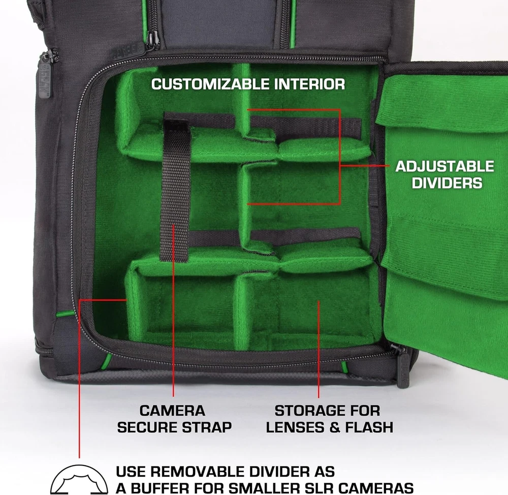 Series: Grsls17100gnew Product Dimensions: 17.99 X 12.01 X 7.99 Inches Compatible Series: For DSLR Type: Camera Bag Material: Polyester Features: Padded, Padded Custom Dividers, Tripod Holder, Rain Cover, Durable Construction, Customizable Storage, Zippered Side Door, Quick Access, Protective Padding Item Dimensions Lxwxh: 17.99 X 12.01 X 7.99 Inches Compatible Model: Not specified Item Diameter (Interior): 11 x 10.5 x 6 To Fit: Camera, Laptop Item Weight: 2.33 pounds Maximum Underwater Depth: Not specified Color: Green Department: Unisex-adult UPC: Does not apply Brand: Unbranded gtin13: Does not apply