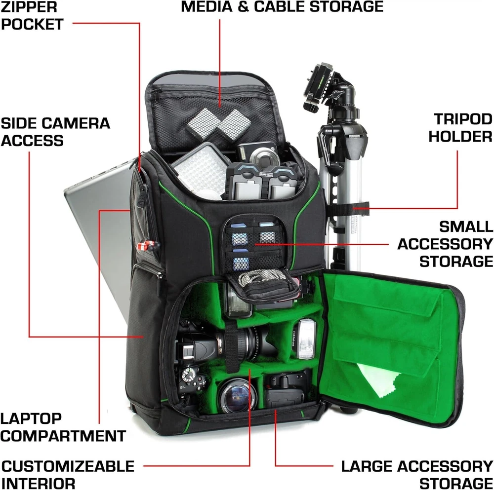 Premium DSLR Camera Backpack with 15.6" Laptop Compartment & Tripod Holder