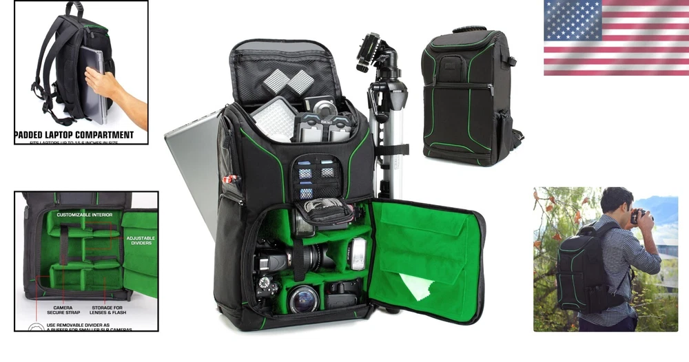 Premium DSLR Camera Backpack with 15.6" Laptop Compartment & Tripod Holder ‹ › ‹ › ‹ › ‹ › ‹ › ‹ › ‹ › ‹ › ‹ › ‹ › ‹ › Premium DSLR Camera Backpack - With 15.6" Laptop Compartment & Tripod Holder Discover the Ultimate in Camera Storage Introducing the Premium DSLR Camera Backpack that is a perfect blend of style, functionality, and safety for your valued photography equipment. Key Features: Best Value: A camera backpack that combines premium features typically found only in high-end packs. Thoughtful Design: Tons of customizable storage space, ideal for personalizing your storage to accommodate all your gear. Optimal Space: The S17 provides just the right amount of room for serious photographers and enthusiasts alike, without the added bulk. Customizable Interior: Padded dividers can be tailored, added, or removed to suit your specific needs, offering you complete versatility. Quick Access: A zippered side door enables swift retrieval of your camera, ensuring you never miss a moment. Protective Laptop Compartment: Designed to accommodate laptops up to 15.6" with protective padding, keeping your tech safe on the go. Durable Hardware: Metal zippers complemented by soft rubber pullers ensure quick and reliable access to your gear without the fear of wear and tear. Why Choose This Backpack? With the modern photographer in mind, our Premium DSLR Camera Backpack offers a blend of elegance and practicality. Elevate your photography experience with a bag that not only safeguards your equipment but also provides you with easy access when you need it the most. Versatile enough for outdoor shoots, urban explorations, or studio work, this backpack promises to be a trusted companion. Choose sophistication in design and comfort while protecting your valuable camera gear—invest in the Premium DSLR Camera Backpack today! Shipping Free & Fast Shipping - We offer free shipping to most of the USA with a normal delivery time of 3-7 days. However, due to the current situation, additional delivery time (up to 3 weeks) may be required for some items. Alternative Carriers - We may use alternative carriers (e.g. USPS, FedEx, UPS, etc.) to ensure your package arrives safely and on time. Due to the use of multiple carriers, we are unable to provide a tracking number automatically. Handling Time - Orders are processed and shipped within 1-2 business days of receiving cleared payment. Shipping Restrictions - Shipping to Alaska, Hawaii, Puerto Rico, Guam, and other US territories may incur shipping charges or delivery restrictions. Please contact us before ordering, or your order can be refunded/cancelled. State Restrictions - There may be restrictions based on your state of purchase. For example, certain items may not be shipped to California due to state regulations. Contact for Tracking Updates - If you require tracking updates or have any concerns about the delivery of your order, please feel free to contact us, and we will be happy to assist you. Return 30-Day Hassle-Free Returns - We want you to be completely satisfied with your purchase. If you are not, you can return the item within 30 days of receiving it for a full refund or exchange. Easy Return Process - To start a return, simply contact us and we will provide you with a prepaid return shipping label and detailed instructions. Restocking Fee - There are no restocking fees for returns. However, the buyer is responsible for return shipping costs if the return is not due to a seller's error. Refund Processing Time - Refunds will be processed within 5 business days of receiving the returned item in its original condition. Payment We accept all major credit cards, PayPal, and Apple Pay for your convenience. Your payment information is secure and encrypted to ensure a safe and seamless transaction. Please complete your payment within 3 days of purchase to avoid any delays in shipping. Feedback Your feedback is extremely important to us. We strive to provide the best products and customer service possible. If you are satisfied with your purchase, please take a moment to leave us a positive review. If you have any concerns or issues with your order, please contact us before leaving negative feedback. We are committed to resolving any problems and ensuring your satisfaction. Contact Us If you have any questions or concerns, please feel free to reach out to our customer support team. You can contact us through the eBay messaging system. We are available Monday to Friday, 9:00 am to 5:00 pm EST, and we will do our best to respond to your inquiry within 24 hours. Buy it now and enjoy a pleasant shopping experience! UPC: Not Set Model: Not Set Unit Quantity: 2.33 Maximum Underwater Depth: Not specified Item Weight: 2.33 pounds Item Diameter (Interior): 11 x 10.5 x 6 Item Height: Not Set Item Height (Interior): Not Set Item Length: Not Set Item Length (Interior): Not Set Item Width: Not Set Item Width (Interior): Not Set To Fit: Camera,Laptop Features: Padded,Padded Custom Dividers,Tripod Holder,Rain Cover,Durable Construction,Customizable Storage,Zippered Side Door,Quick Access,Protective Padding Compatible Brand: Not Set Compatible Series: For DSLR Compatible Model: Not specified Brand: Unbranded Type: Camera Bag Material: Polyester MPN: Not Set Unit Type: lb Color: Green Country/Region of Manufacture: Not Set Manufacturer Warranty: Not Set