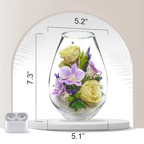 30 Days Return Policy Fast Delivery Trusted seller Premium Fresh Cut Preserved Flower Bouquet in a Sealed Glass Vase | Long Lasting Bouquet Orchids and Roses Stays Fresh for 5+ Years | No Water Needed | Unique Gift for Women Product Description 100% NATURAL FRESH ORCHIDS AND ROSES: Handpicked from Thailand's lush fields, these real orchids and roses are preserved through a non-toxic method, transforming them into timeless wonders. LONG-LASTING PRESERVED BLOOMS: Our vacuum-sealed technology ensures flowers remain fresh for 5 years or more, offering lasting beauty with no maintenance required. SUSTAINABLE & ECO-FRIENDLY: These mixed flower bouquets require no water or irrigation. Allergy-free and pet-safe, they are perfect for an eco-conscious lifestyle. MODERN & INSTA-FRIENDLY: Stylish crystal-clear vases keep the orchids and roses fresh and are perfect for modern decor. Vases are sealed and cannot be opened. PERFECT GIFT & TIMELESS DECOR: Elevate your space and make hearts skip a beat with our preserved floral masterpieces. Ideal as a gift for birthdays, Mother's Day, and more. UNIQUE PRESENT: Stand out with a preserved flower gift idea that’s perfect for special occasions, birthdays, appreciation, retirement, or "get-well soon" moments. Ideal regalos para mujeres y madres. VASE SIZE: 5.1 x 5.2 x 7.3 IN Shipping Returns Payment Shipping Shipping is FREE to all addresses other than APO/PO boxes in the lower 48 states. All our stock ships from US-based warehouses. Shipped via USPS or UPS (depending on location and package weight) Unless stated otherwise, all orders will ship within 24-72 hours of your payment being processed. Check our feedback to see the great reviews of FAST shipping we offer. Returns As our valued customer, we will do our best to make sure the product you receive arrives to you on time and as expected. If you are not satisfied with your purchase, please contact us within 30 days of receiving your order to process a return. Payment We currently accept payment via eBay managed payments only. Once payment is cleared, we will dispatch your shipment within 1-3 business days. Please refer to the "Shipping" tab for more information regarding shipping speed to your destination.