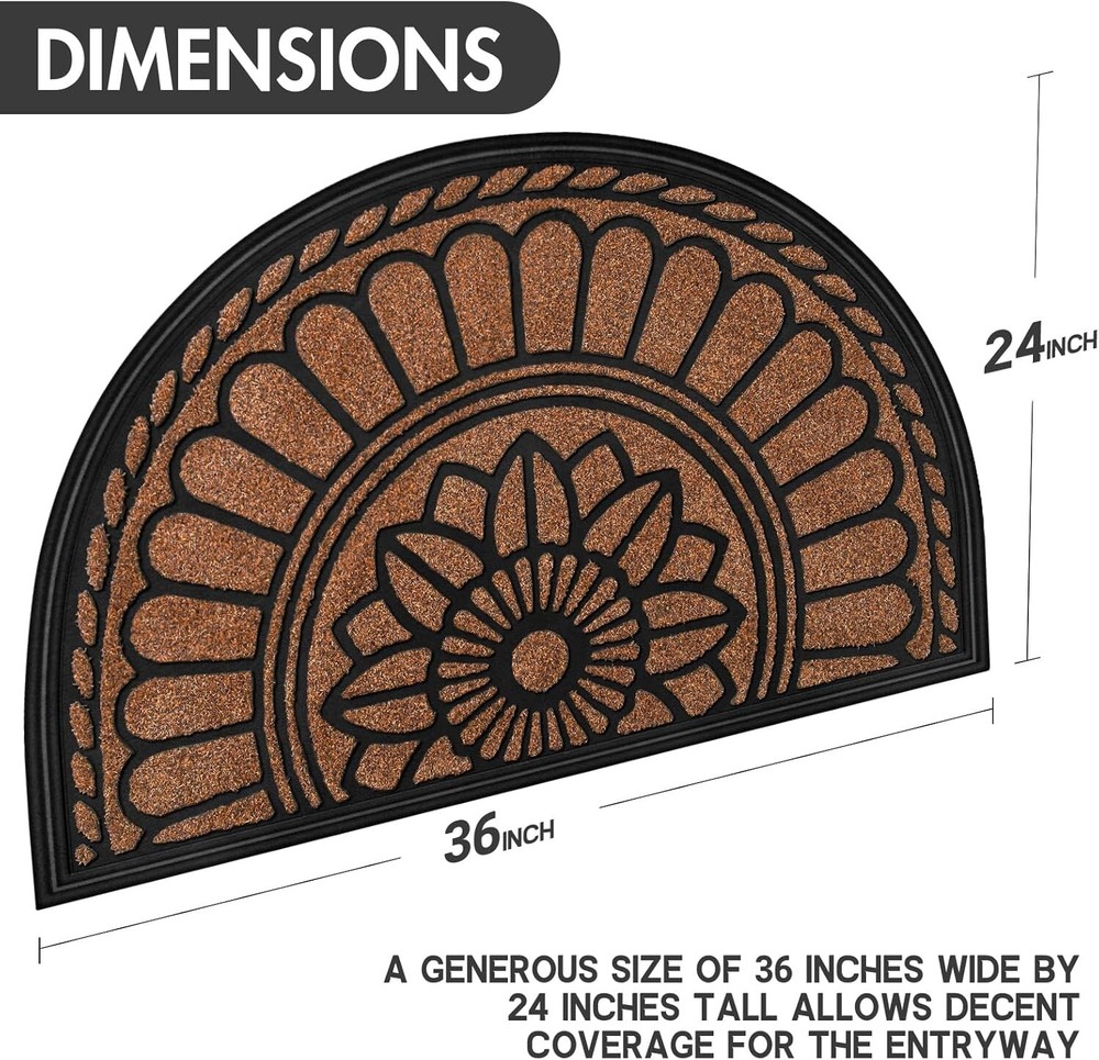 Stylish Half-Round Rubber Door Mat - Durable Non-Slip Entrance Way Mat 24" x 36" ‹ › ‹ › ‹ › ‹ › ‹ › ‹ › ‹ › ‹ › ‹ › ‹ › ‹ › Stylish Half-Round Rubber Door Mat Durable Non-Slip Entrance Way Mat - 24" x 36" Features: Constructed of 100% natural rubber, ensuring no odor and eco-friendly safety for your family and pets. Upgraded technology makes the polypropylene fiber practical and prevents shedding, ensuring longevity. Heavy-duty design for all-around versatility, enhancing the beauty of your porch. Strong rubber beveled border forms a retention dam to trap moisture, mud, and other debris. Patterned polypropylene fabric traps dirt and drains quickly, protecting your home from wear and tear. Low-profile design of 1/2" thick is perfect for low-clearing doors or entryways to prevent obstruction. Anti-slip backing ensures the mat grips effectively to all floor types, providing safety for kids and pets. Benefits: Enhances the aesthetic of your entryway while keeping it clean from dirt and debris. Versatility for both indoor and outdoor use, suitable for various locations around your home. Easily maintained – simply vacuum, shake, or rinse for a clean slate. Durable construction that guarantees longevity, even in high-traffic areas. Fully air dries quickly after washing, ensuring functionality remains intact. Why Choose Our Stylish Half-Round Rubber Door Mat? Elevate your home’s entrance with our Stylish Half-Round Rubber Door Mat, masterfully crafted from 100% natural rubber and premium polypropylene. Enjoy the peace of mind that comes with a mat designed for durability, safety, and easy maintenance. Its low-profile design allows for seamless entry while the non-slip backing guarantees a firm grip—thing more than just a mat, it’s a significant upgrade for your entryway! Don’t settle for ordinary when you can have extraordinary. Transform your doormat experience today! Shipping Free & Fast Shipping - We offer free shipping to most of the USA with a normal delivery time of 3-10 businessdays. However, due to various situations, additional delivery time (up to 3 weeks) may be required for some items. Alternative Carriers - We may use alternative carriers (e.g. USPS, FedEx, UPS, etc.) to ensure your package arrives safely and on time. Due to the use of multiple carriers, we are unable to provide a tracking number automatically. Handling Time - Orders are processed and shipped within 1-5 business days of receiving cleared payment. Shipping Restrictions - Shipping to Alaska, Hawaii, Puerto Rico, Guam, and other US territories may incur shipping charges or delivery restrictions. Please contact us before ordering, or your order can be refunded/cancelled. State Restrictions - There may be restrictions based on your state of purchase. For example, certain items may not be shipped to California due to state regulations. Contact for Tracking Updates - If you require tracking updates or have any concerns about the delivery of your order, please feel free to contact us, and we will be happy to assist you. Return Please see our ebay return policy. We do not accept return on most products. This is to avoid customers mis-using ebay returns. All sales are final. Please be sure to check the return policy listed at the top of the listing. In rare cases, we may accept returns, if the buyer pays both ways shipping and 20% restocking fee. If you are un-sure of return policy of a particular item, please ask before buying. Payment We accept all major credit cards, PayPal, and Apple Pay for your convenience. Your payment information is secure and encrypted to ensure a safe and seamless transaction. Please complete your payment within 3 days of purchase to avoid any delays in shipping. Feedback Your feedback is extremely important to us. We strive to provide the best products and customer service possible. If you are satisfied with your purchase, please take a moment to leave us a positive review. If you have any concerns or issues with your order, please contact us before leaving negative feedback. We are committed to resolving any problems and ensuring your satisfaction. Contact Us If you have any questions or concerns, please feel free to reach out to our customer support team. You can contact us through the eBay messaging system. We are available Monday to Friday, 9:00 am to 5:00 pm EST, and we will do our best to respond to your inquiry within 24 hours. Buy it now and enjoy a pleasant shopping experience! UPC: Not Set Unit Quantity: 4.99 Room: Any Room,Bathroom,Garage,Hallway,Kitchen,Living Room,Patio,Porch Material: 100% Solution Dyed Fiber,100% Natural Rubber,Polypropylene Features: Easy to Clean,Eco Friendly,Non-Slip,Stain Resistant,Water Resistant,Durable,Heavy Duty,Captures Dirt,Low Profile Department: Kids,Adults Theme: Floral Brand: Unbranded Type: Rug Color: Coffee Pattern: Grass Shape: Half-Round Item Width: Not Set Item Length: 36 in MPN: Not Set Model: Not Set Size: 24 x 36 in Style: Patterned Pile Height: Low Pile Regional Design: Not Set Country/Region of Manufacture: Not Set Pile Type: Low Pile Weave: Machine-Woven Era: 21st Century (2000-Now) Unit Type: lb Personalize: Not Set Personalized: Not Set